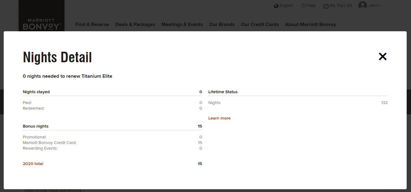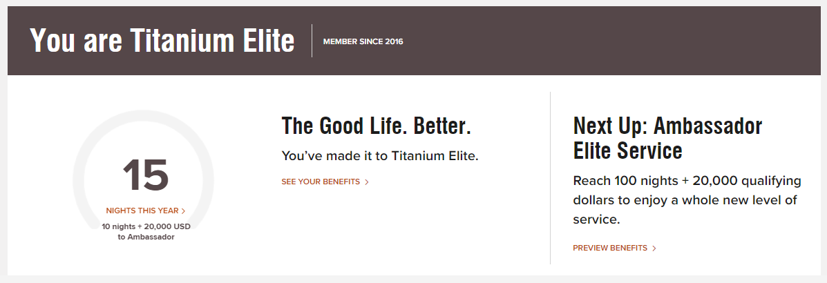 However, there seem to be numerous glitches in the system. You may have noted in the screenshot above that I have "0 nights needed to renew Titanium Elite."