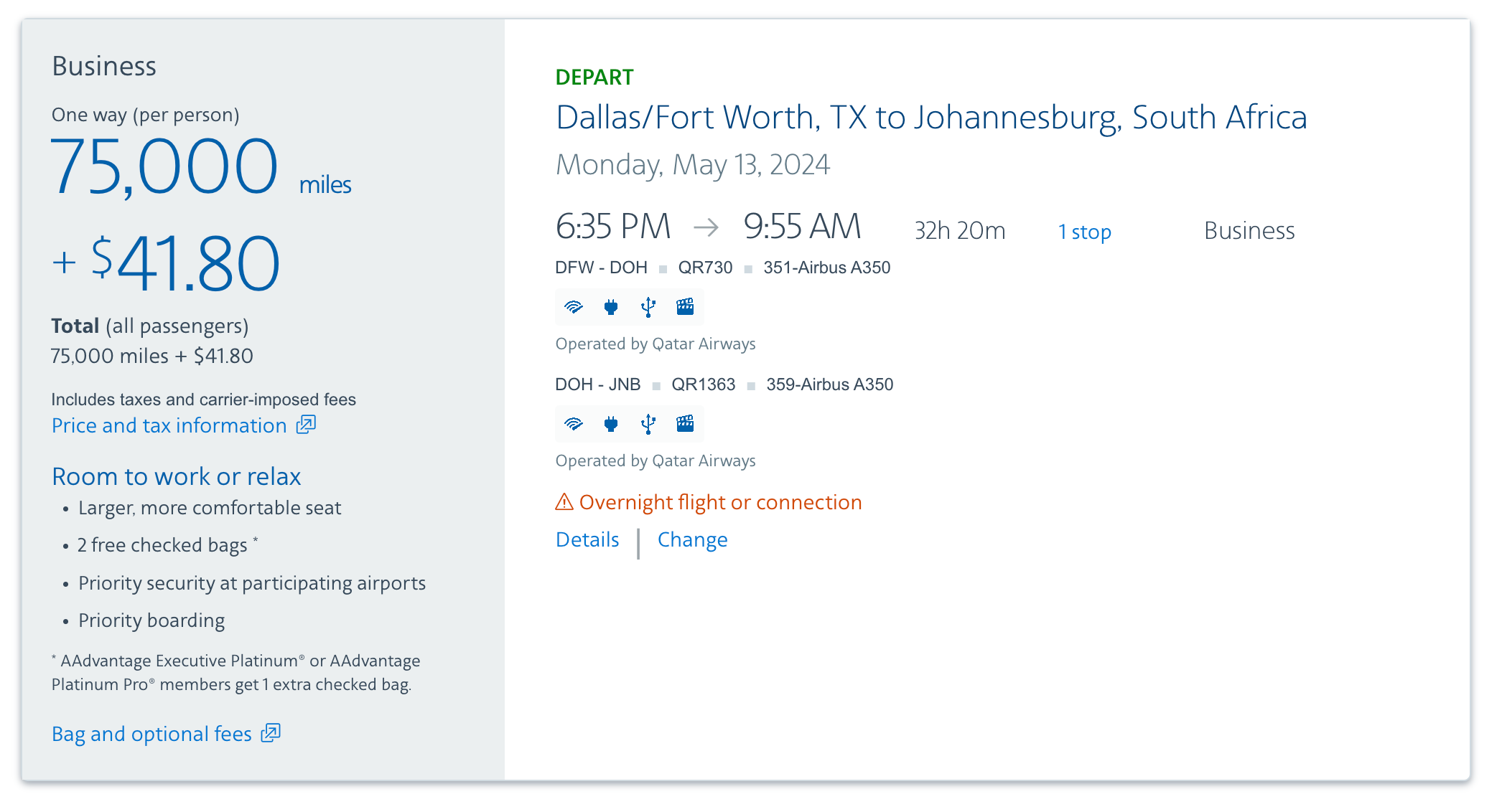 Quick Points: Book partner awards at fixed rates using AAdvantage miles