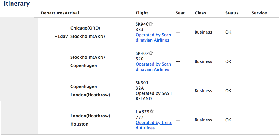 The one downside of this itinerary is we will have to get ourselves to Chicago on a separate ticket as United did not have any saver awards from Houston to Chicago that we could book via ANA, but that's a small price to pay for what will come next. We'll add in plenty of buffer time for cancellations or delays due to the separate tickets. An added bonus of flying out of Chicago on SAS Business Class is we should get to hang out for the day in the United Polaris lounge that I still have yet to visit.