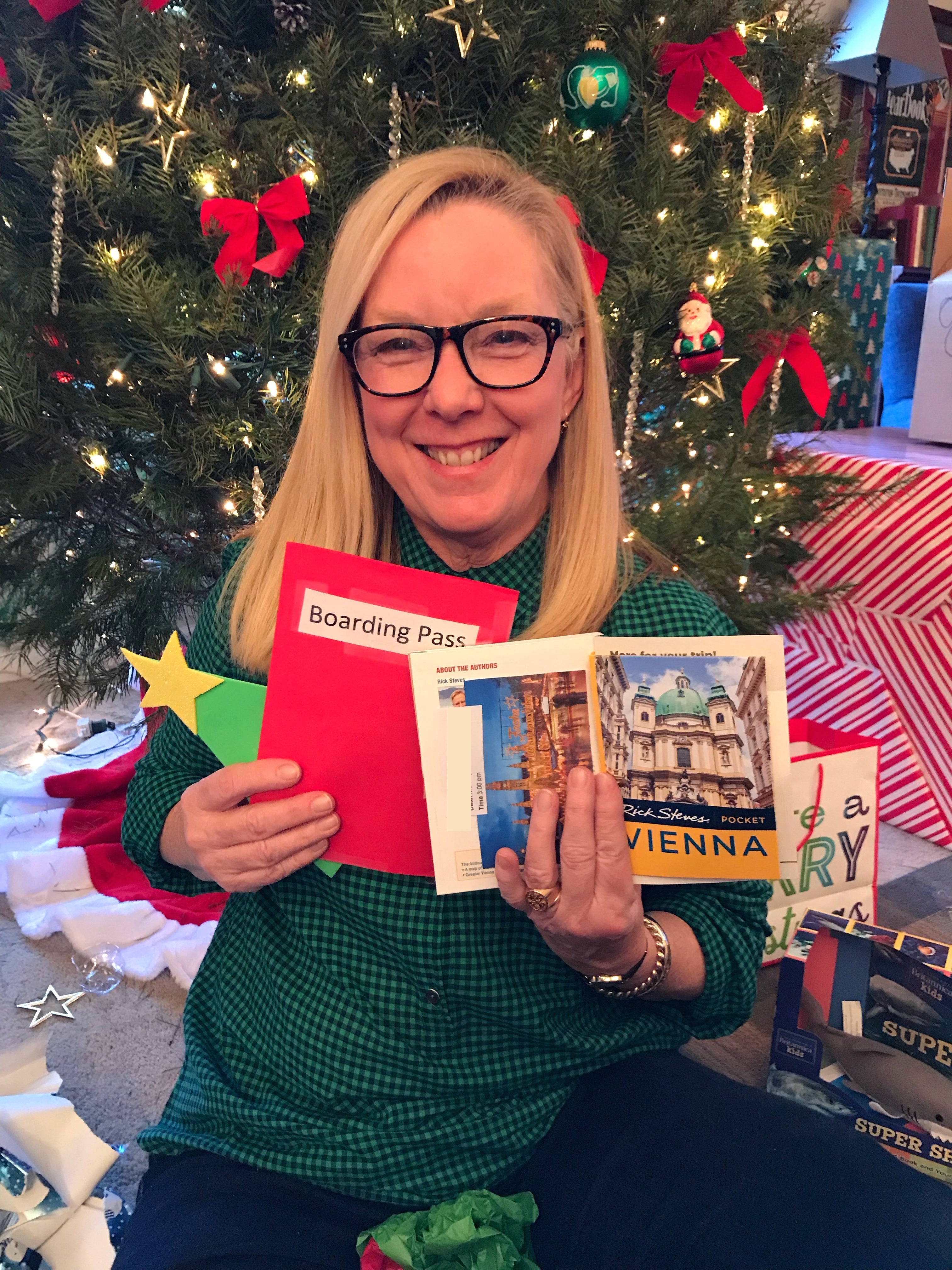 To gift the trip, I ordered a Vienna guidebook online and then added pages with all of our trip details including a route map, photos of the Iberia business class seats, the hotel, the Christmas Markets, and more. It certainly made for a fun Christmas morning reveal, and now we just get to count down until the holiday season 2018 to make this travel dream a reality!