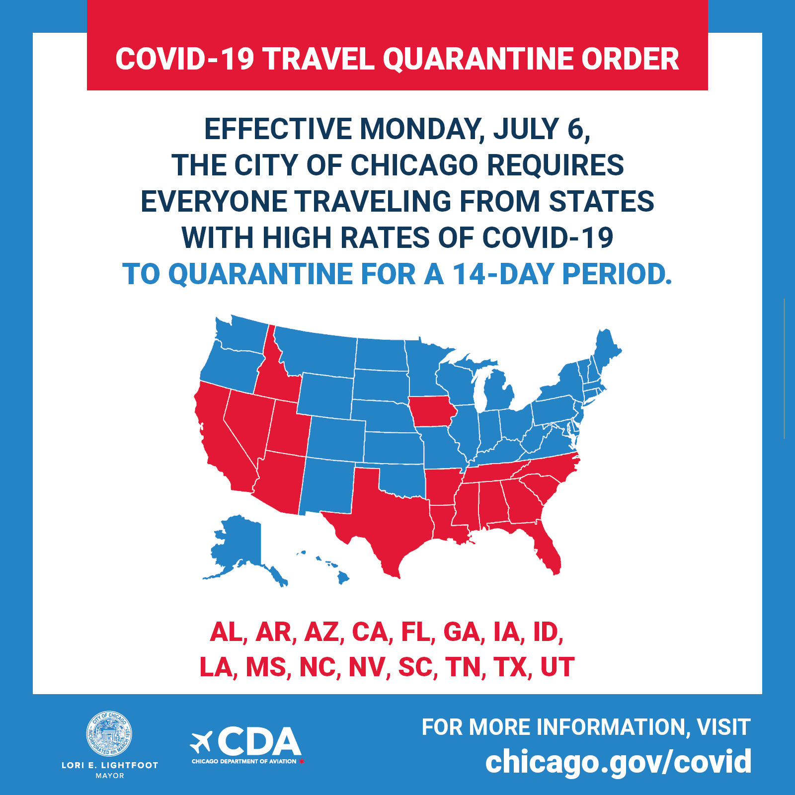 The city of Chicago says those coming from the most-impacted states must stay put -- in their home, hotel, or rental -- for 14 days before doing any outside activities.