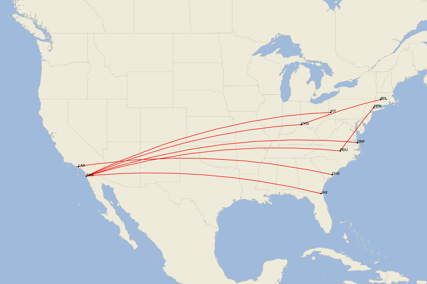 After all, it's possible that San Diego's largest carrier, Southwest Airlines, might've considered adding some (or all) of these destinations in the past but felt that these flights wouldn't be profitable.