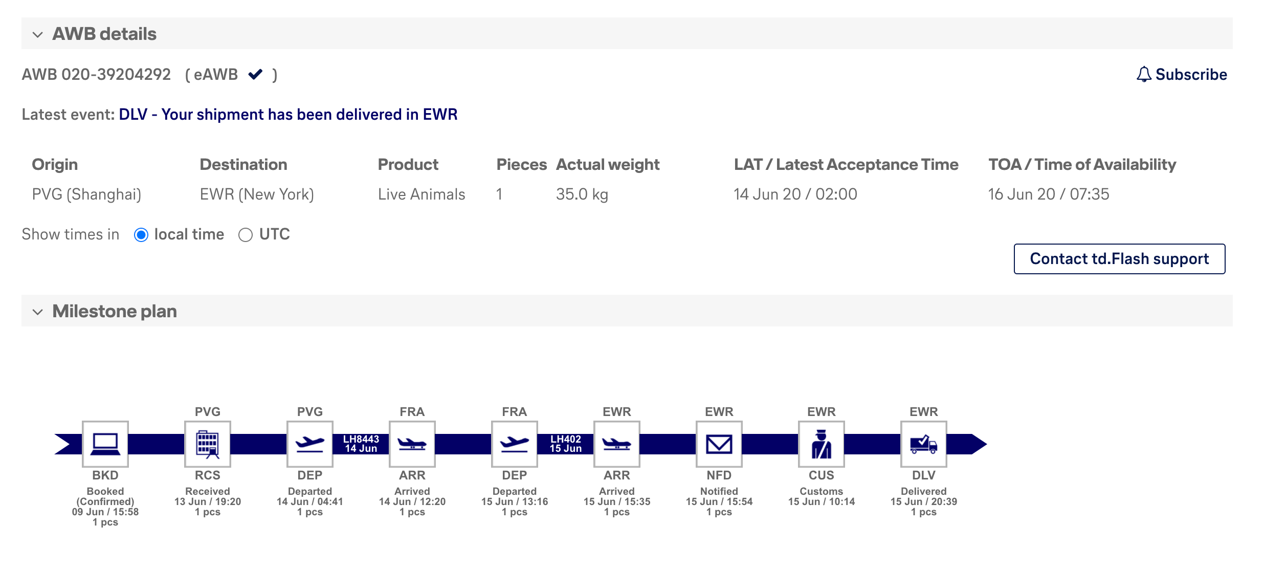 The Lufthansa cargo website had a handy tracking tool where we could follow along with his progress, though I personally had my eyes glued to Flightradar24 every moment he was in the air.