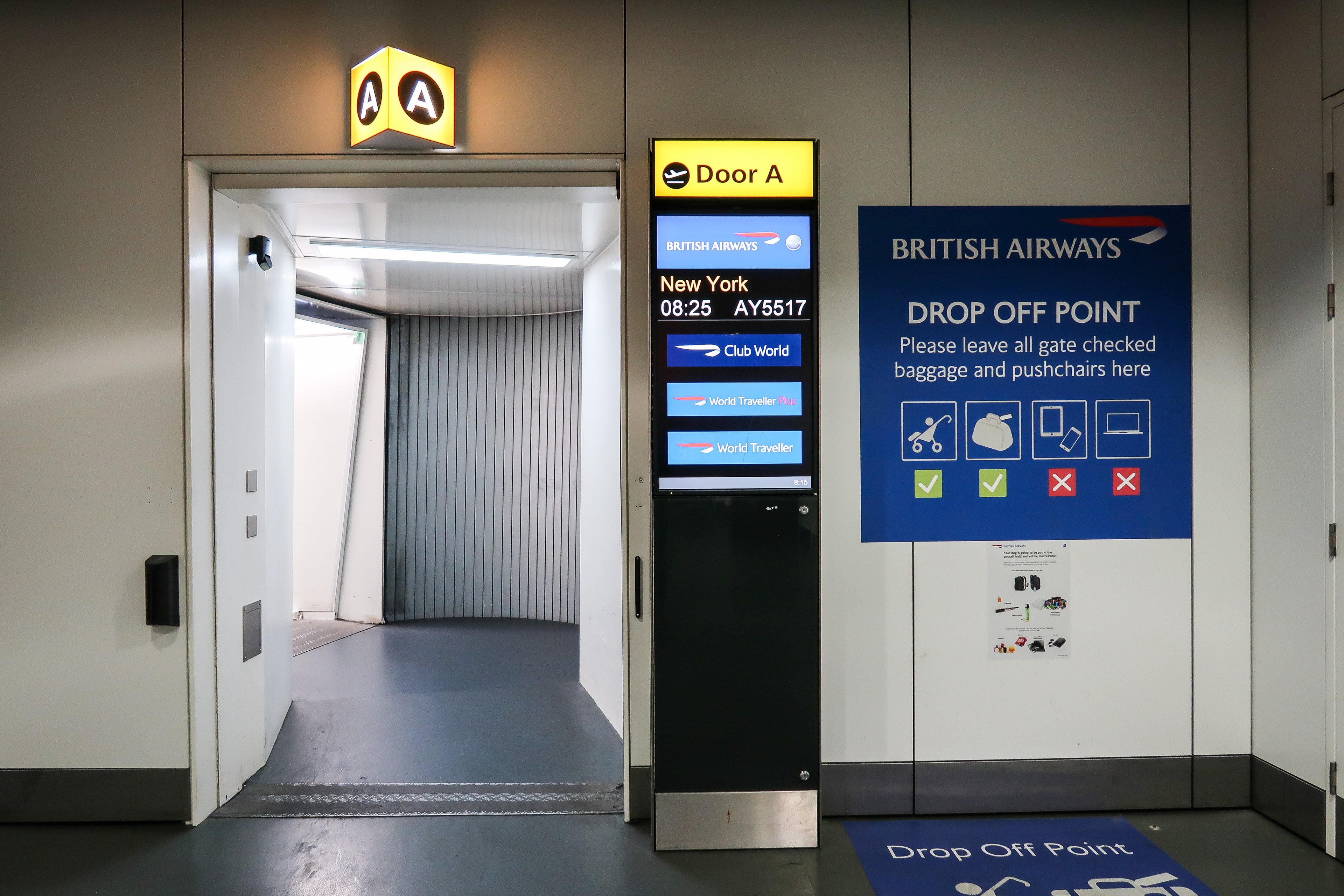 We boarded our 20-year-old Queen, which was delivered new to BA in 1999, through the C gates at Terminal 5, which required a short shuttle train that passed under the apron.