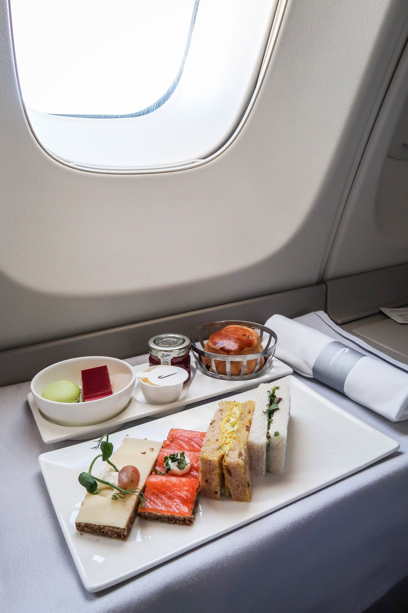 Around two hours before landing, afternoon tea was served. It was nice, especially the coronation chicken sandwich which was tasty on soft bread, and the scone, which was warm and crumbly. More tea followed.