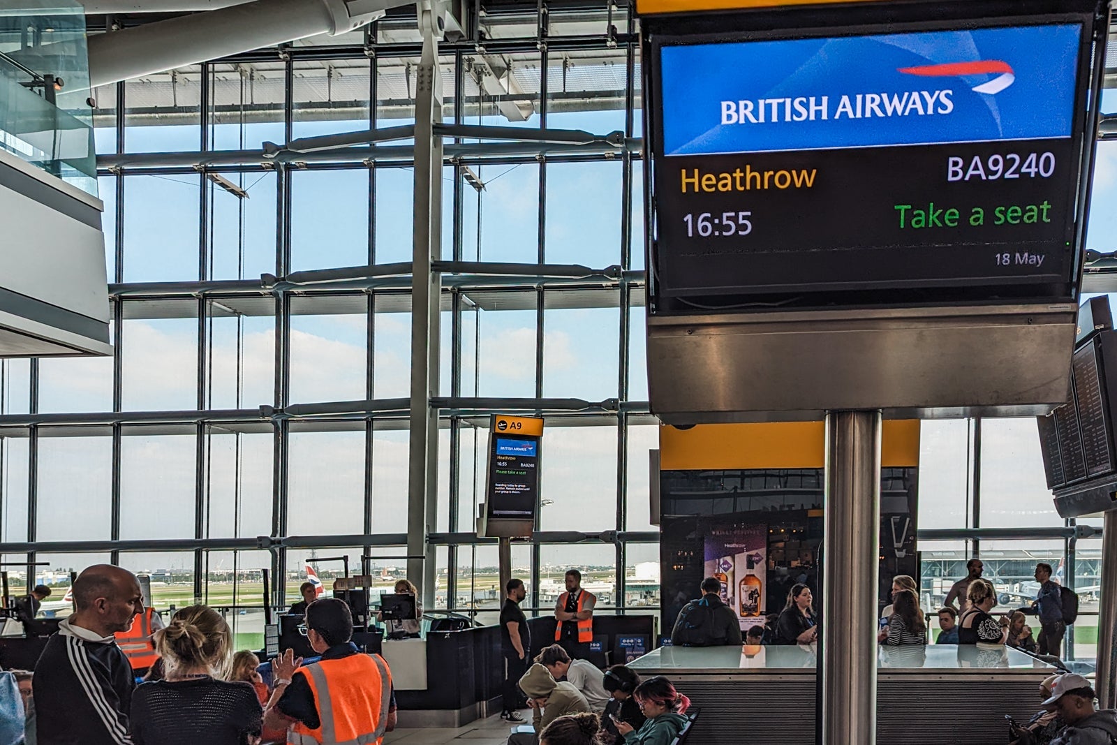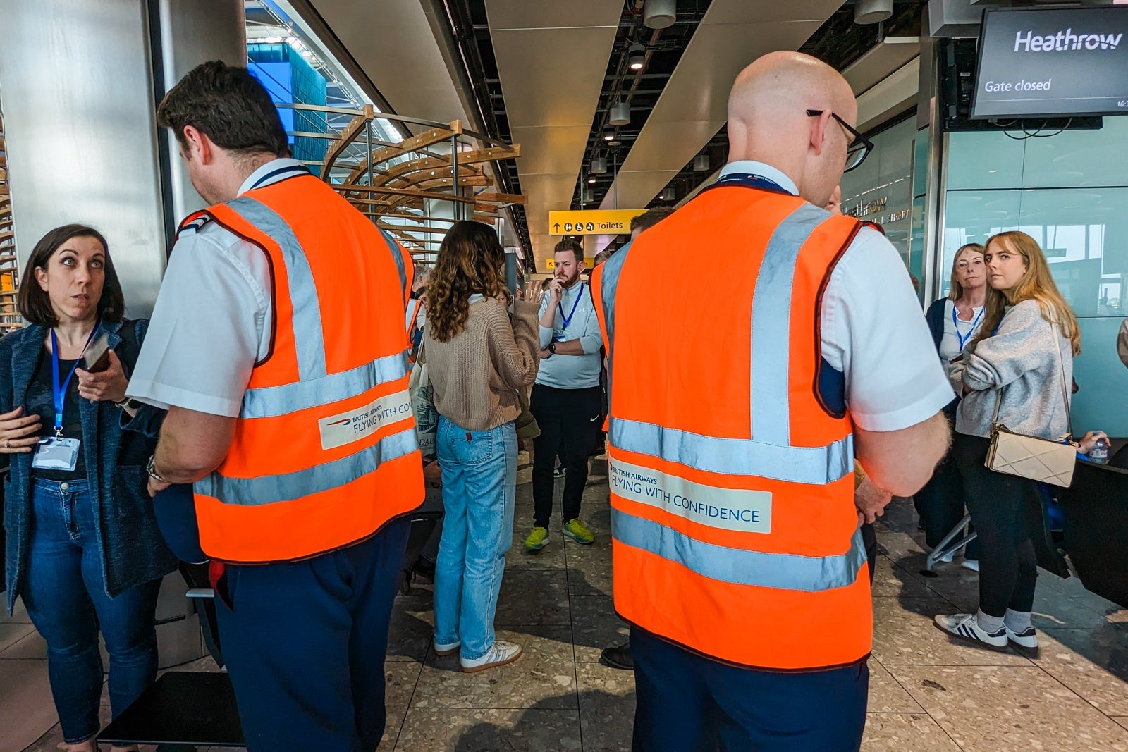 Around 3 p.m., we were divided into groups of 10, and each group was allocated a BA official to escort us on the short walk to Terminal 5. While the terminal was reasonably quiet, there was still a full schedule of flights departing Saturday afternoon, and it was useful to have someone escort our group, especially for inexperienced travelers.