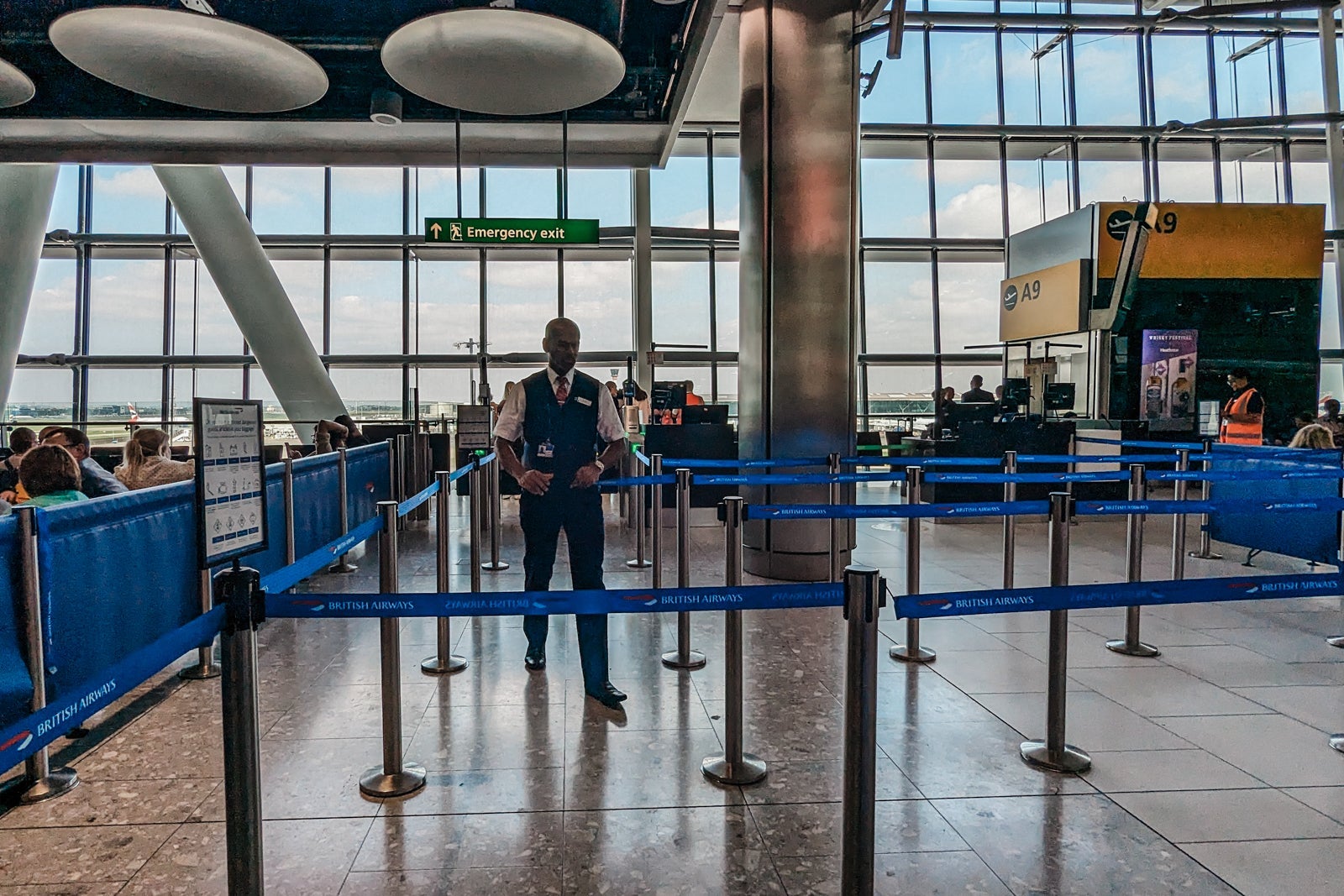 The security in Terminal 5 had been briefed on our arrival, and when our steward advised them that we were "one of the course groups," they patiently allowed us extra time to prepare to pass through security. They cheerfully explained why we needed to remove electronics and liquids as well as why the restrictions were in place.