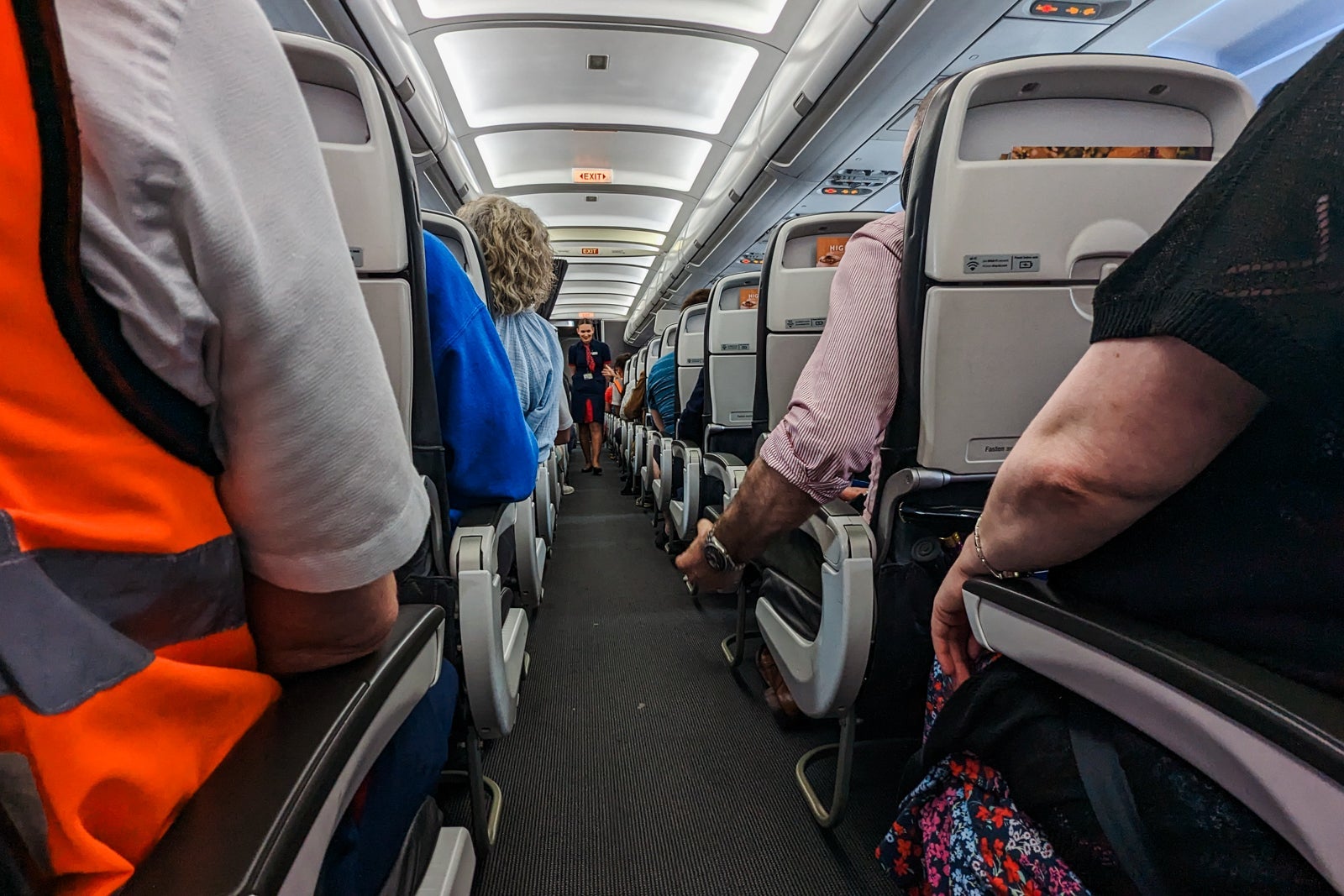 Capt. Allright took the microphone at the gate, encouraging us to board as we felt comfortable and sit wherever we liked. While some attendees confidently strode forward, keen to have the flight and course over as quickly as possible, others needed additional time and encouragement.