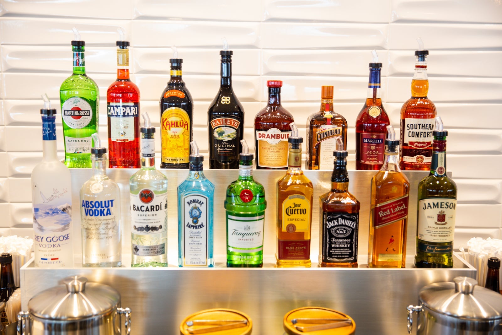 There's a massive self-serve bar that will keep travelers plenty hydrated with an assortment of wine, spirits and soft drinks to choose from.