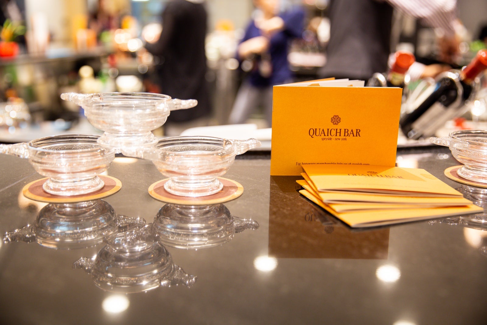 There's a new addition that you'll notice immediately upon entering, dubbed the Quaich Bar, covered in granite (a common feature throughout the lounge) and created in partnership with The Craigellachie Hotel in Speyside, Scotland. Here guests can enjoy a drink in the unique Scottish two-handed cups.