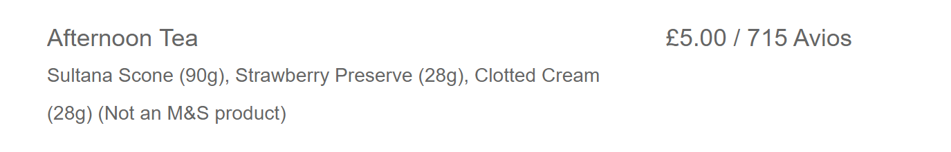 The new British Airways buy-on-board menu made international news this week when passengers started to share that the most quintessentially British item on offer — the Afternoon Tea for £5 GBP ($6.50) or 715 Avios — does not include any actual tea on the short-haul economy service within Europe. Rather, the "Afternoon Tea" consists solely of a sultana (raisin) scone, strawberry jam and clotted cream, a spread that lays at the intersection of whipped cream and butter, originally from Southwest England.
