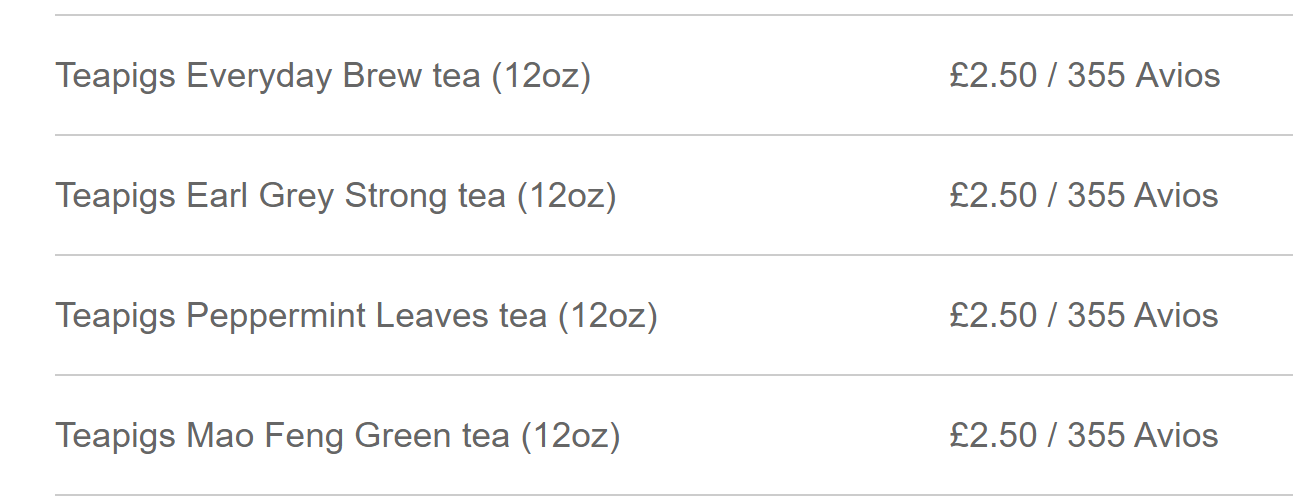 If one wishes to drink tea with their Afternoon Tea, it can be ordered separately for £2.50 ($3.25) or 355 Avios. So, to get the Afternoon Tea with tea would be £7.50 ($9.75) cash or 1,070 Avios (which TPG values at $16.05). (The Avios redemptions for Afternoon Tea — with or without the tea — are clearly a bad buy.)
