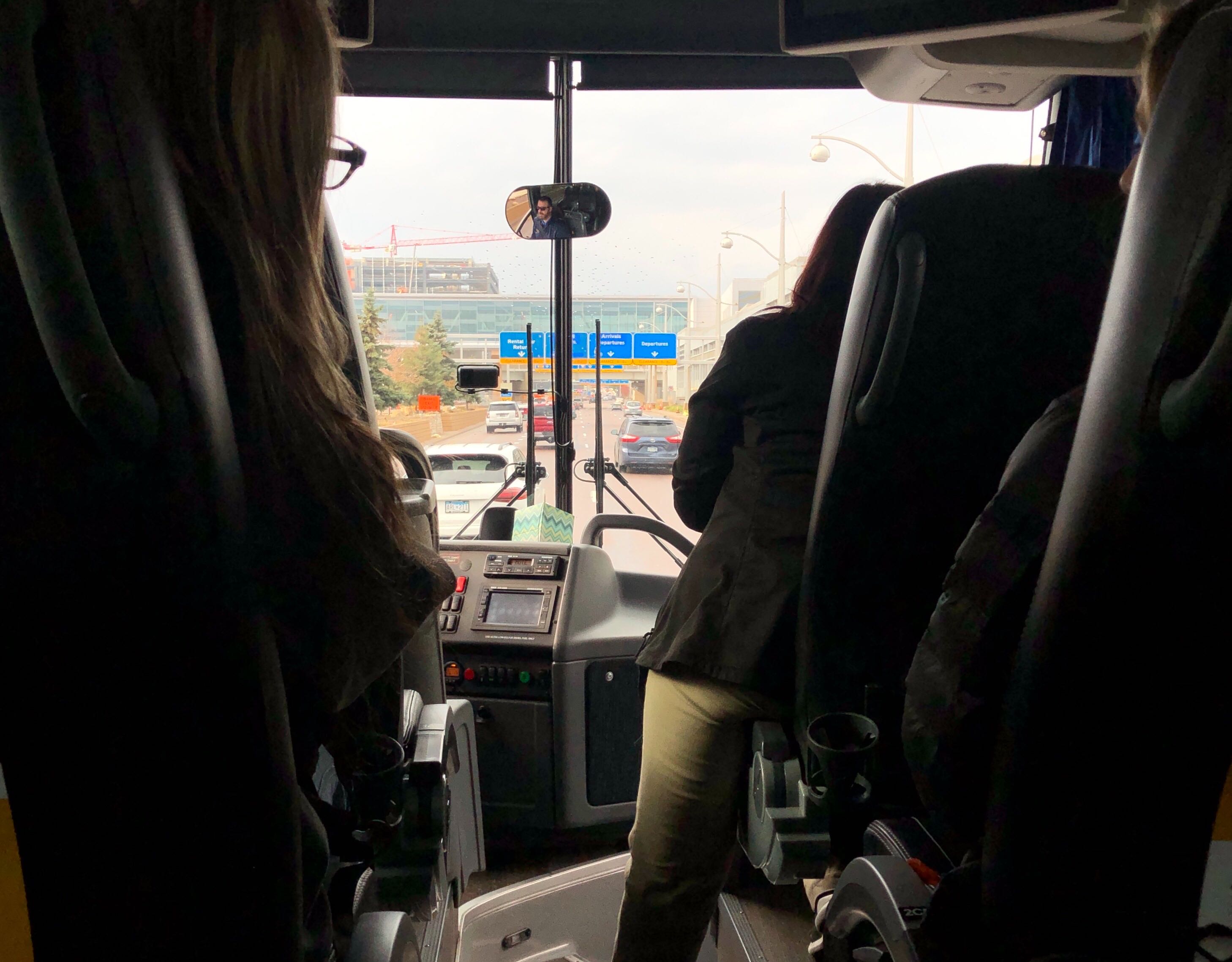 Duluth residents Jeff Davis and Jeremiah Kanabe were on the inaugural run to the Minneapolis airport to catch a Sun Country flight. While they had won a trip to San Diego through a competition marking the launch of the new partnership, they both agreed that the the bus was easier and cheaper than driving to the Twin Cities, not to mention flying out of Duluth.