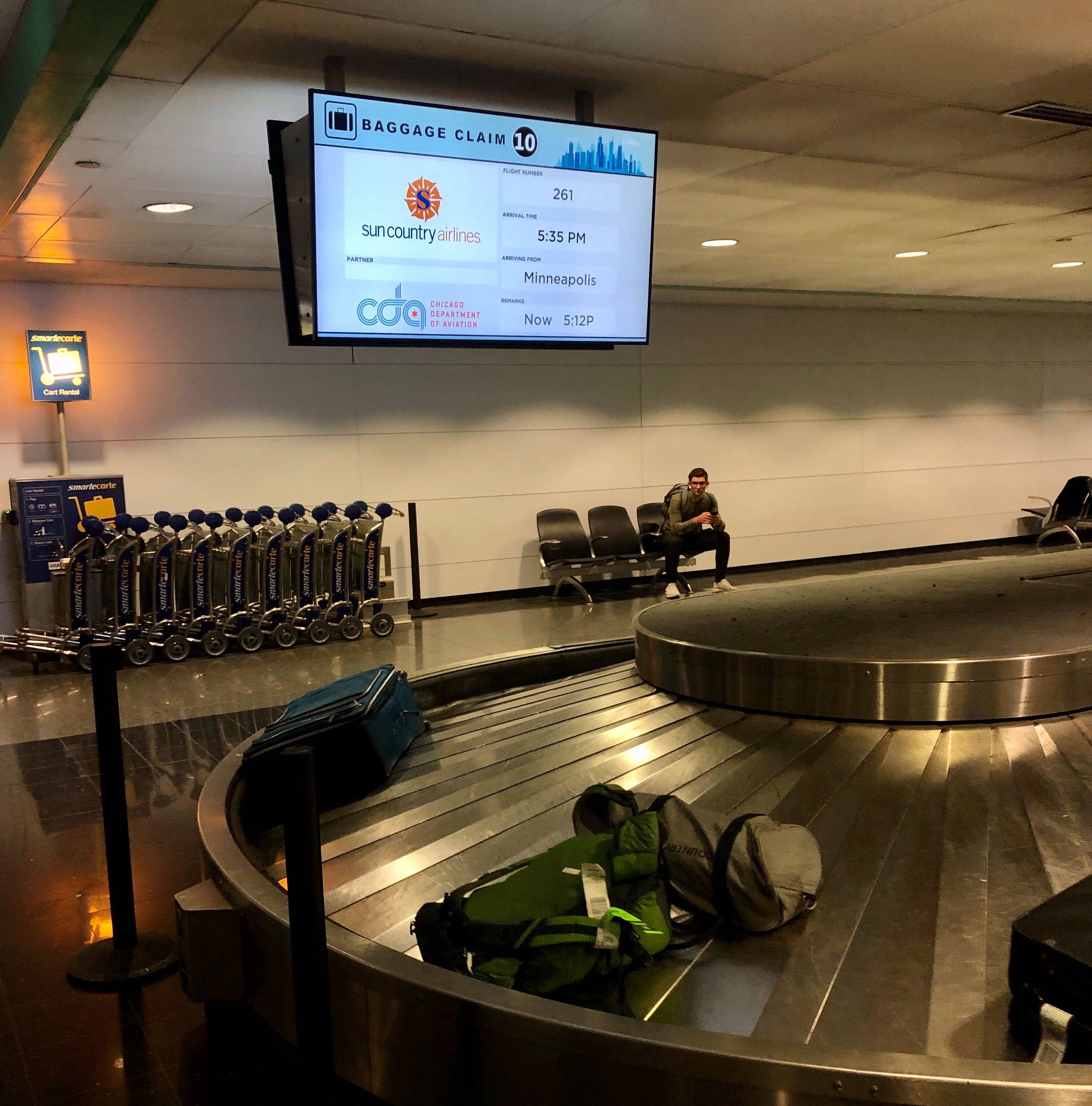 That is one of Sun Country and Landline's selling points: passengers can check bags through to their final destination. I was able to drop my bag — the first one checked in under the partnership, I was told — at the Landline counter in Duluth. I picked it up in Chicago at baggage claim after a connecting flight on Sun Country without a hitch. The airline charges for checked bags, a fee that applied for my entire itinerary.