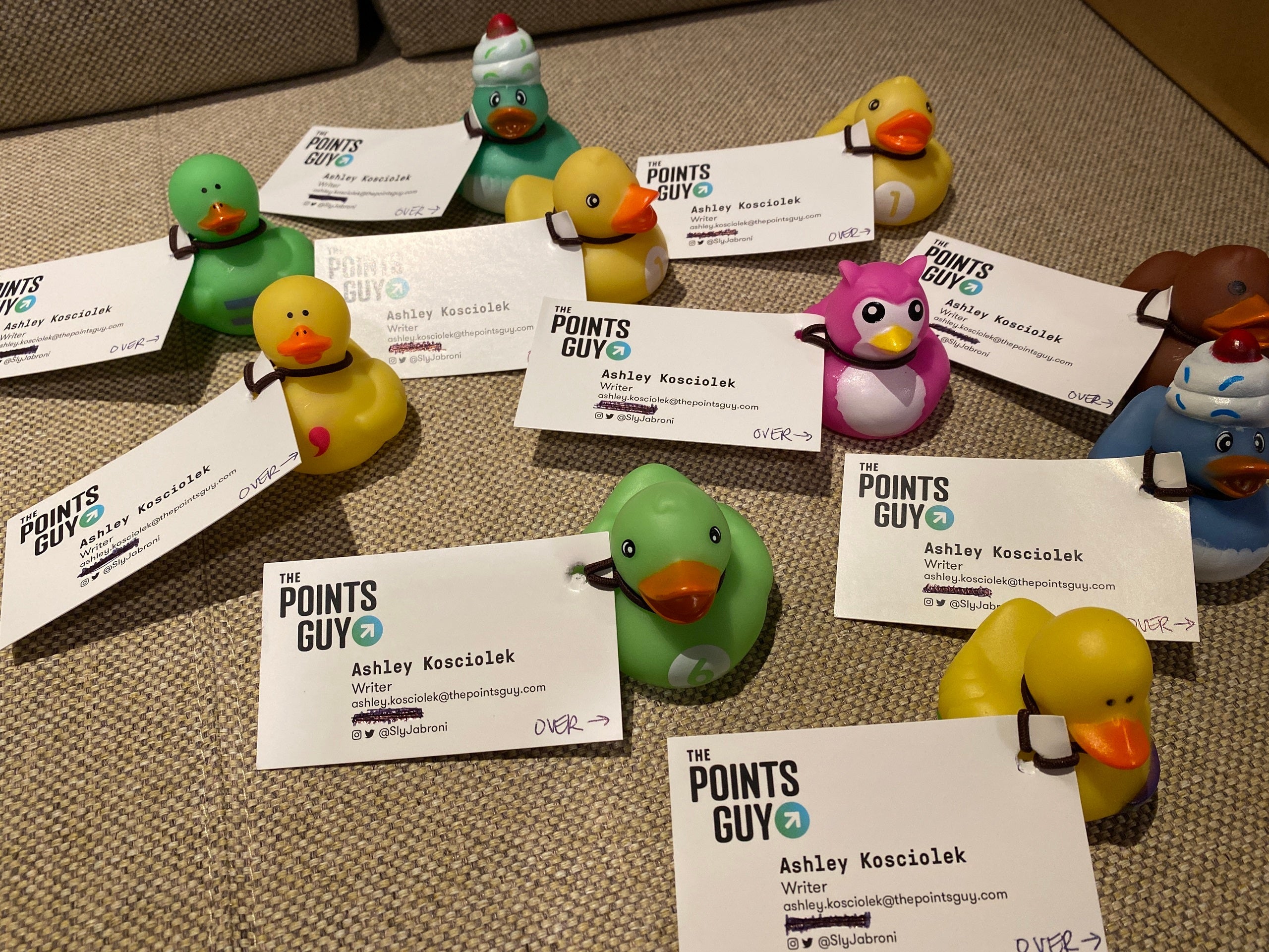 If you're an avid cruiser, you might be familiar with the concept of hiding rubber ducks for others to find. I decided to win a bunch, attach my business card and enlist the help of my other coworker's 8-year-old daughter to hide them in some of the ship's common areas.