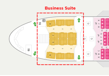 A diagram of the Business Suites shows that it will still be 12 seats in the same configuration as its first class. One Mile at a Time reports that the business class will retain the same first-class seats with doors, but now it is branded as a business product. Mileage earning, onboard catering and baggage allowances, however, will all shift to current business class levels.