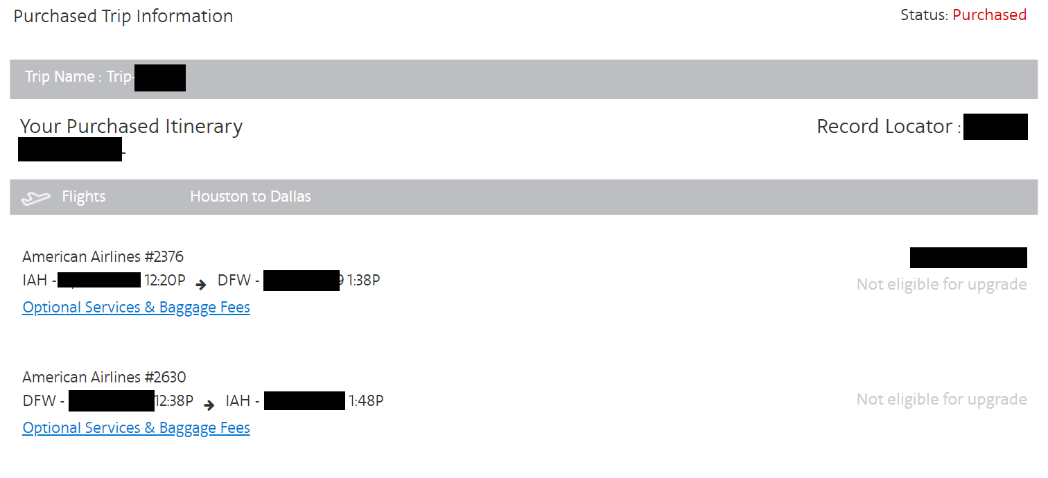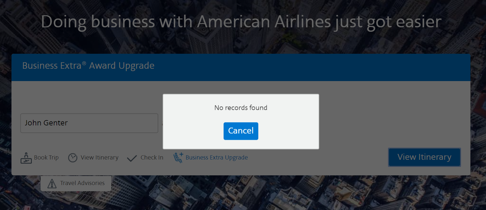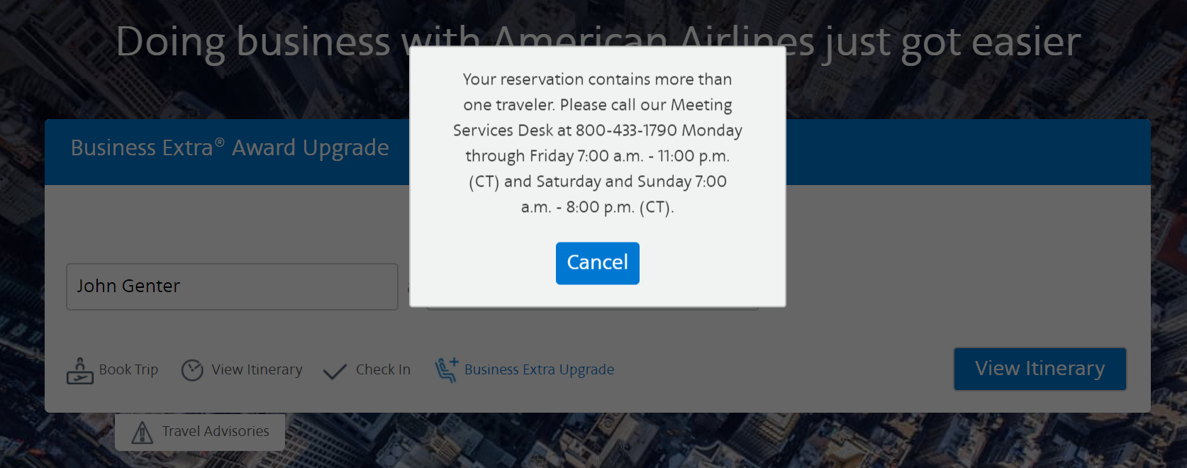 As a big fan of the Business Extra program and frequent AA flyer, I was eager to try to use this new system for myself. Unfortunately, I didn't have a single upcoming flight that qualified. One of the biggest limitations I ran into is that the new system won't let you apply an upgrade to a reservation with more than one traveler.