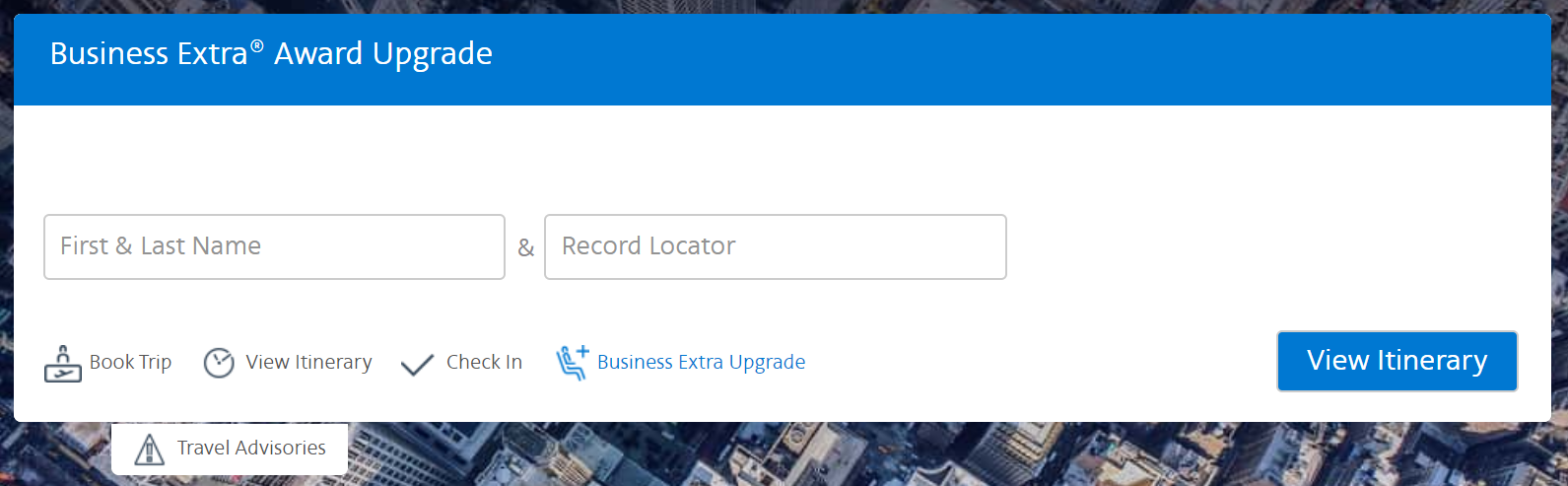 For upgrades, go back to the Business Extra homepage and click "Business Extra Upgrade" to get the award upgrade search widget: