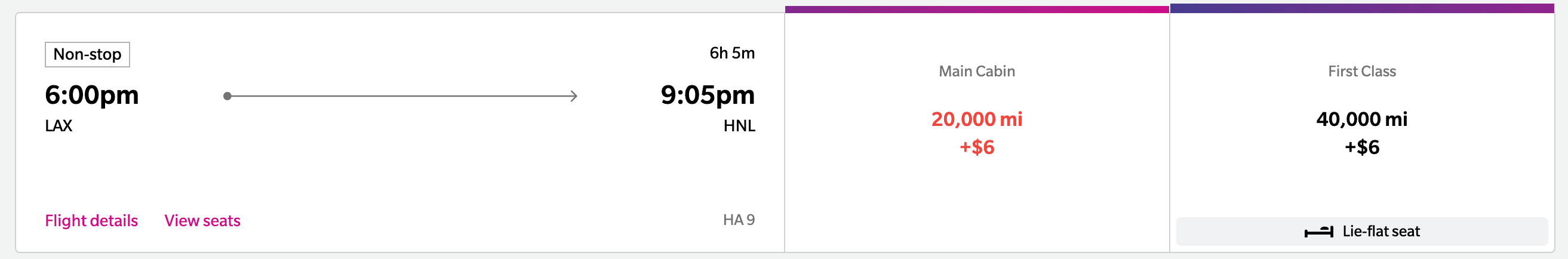 But don't forget that HawaiianMiles are valuable in their own right. If you're dreaming of a tropical getaway this winter, you can find nonstop award availability from Los Angeles to Honolulu in March for only 40,000 miles and $6 in taxes and fees for a lie-flat first-class seat — and it may be worth buying the miles you need to get there.