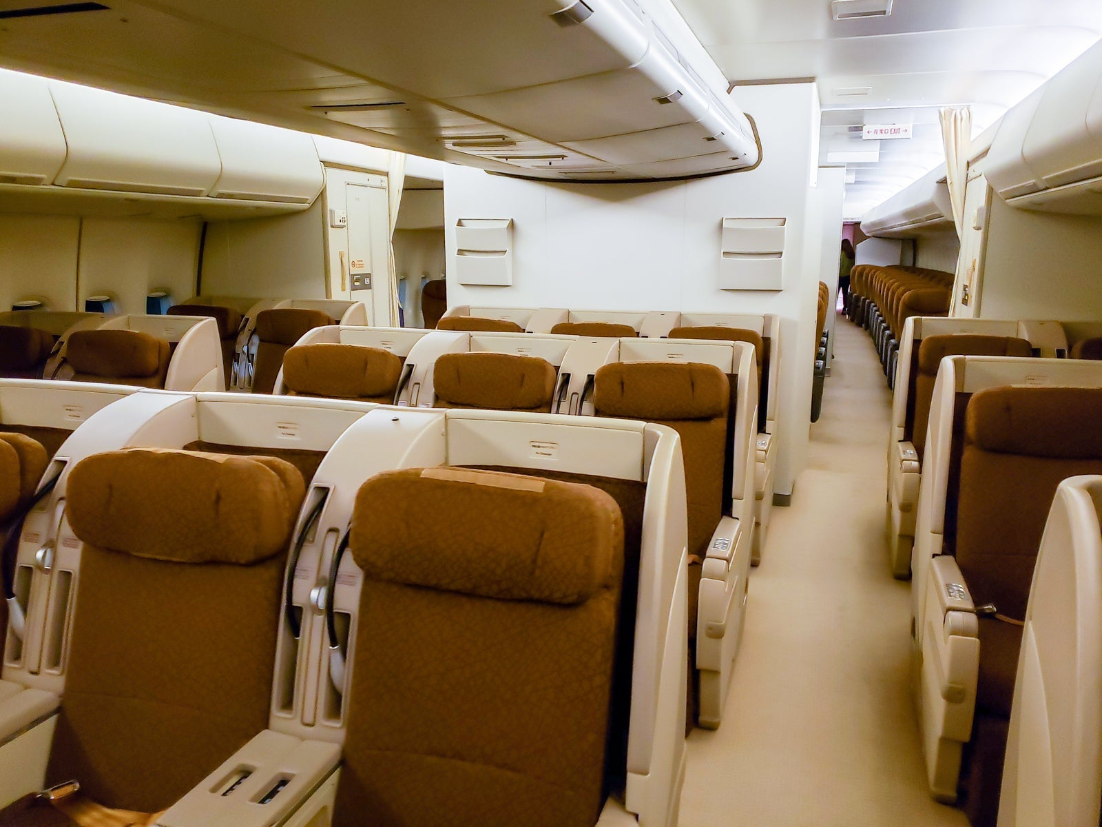 In its current configuration, the plane seats about 85 people, compared to around 400 that a commercial 747-400 would usually carry. Some of those 85 seats are in a 2-3-2 layout, typical of business class a few years ago; others are in a layout equivalent to commercial economy class. Those non-VIP sections were typically used by the entourage and press.