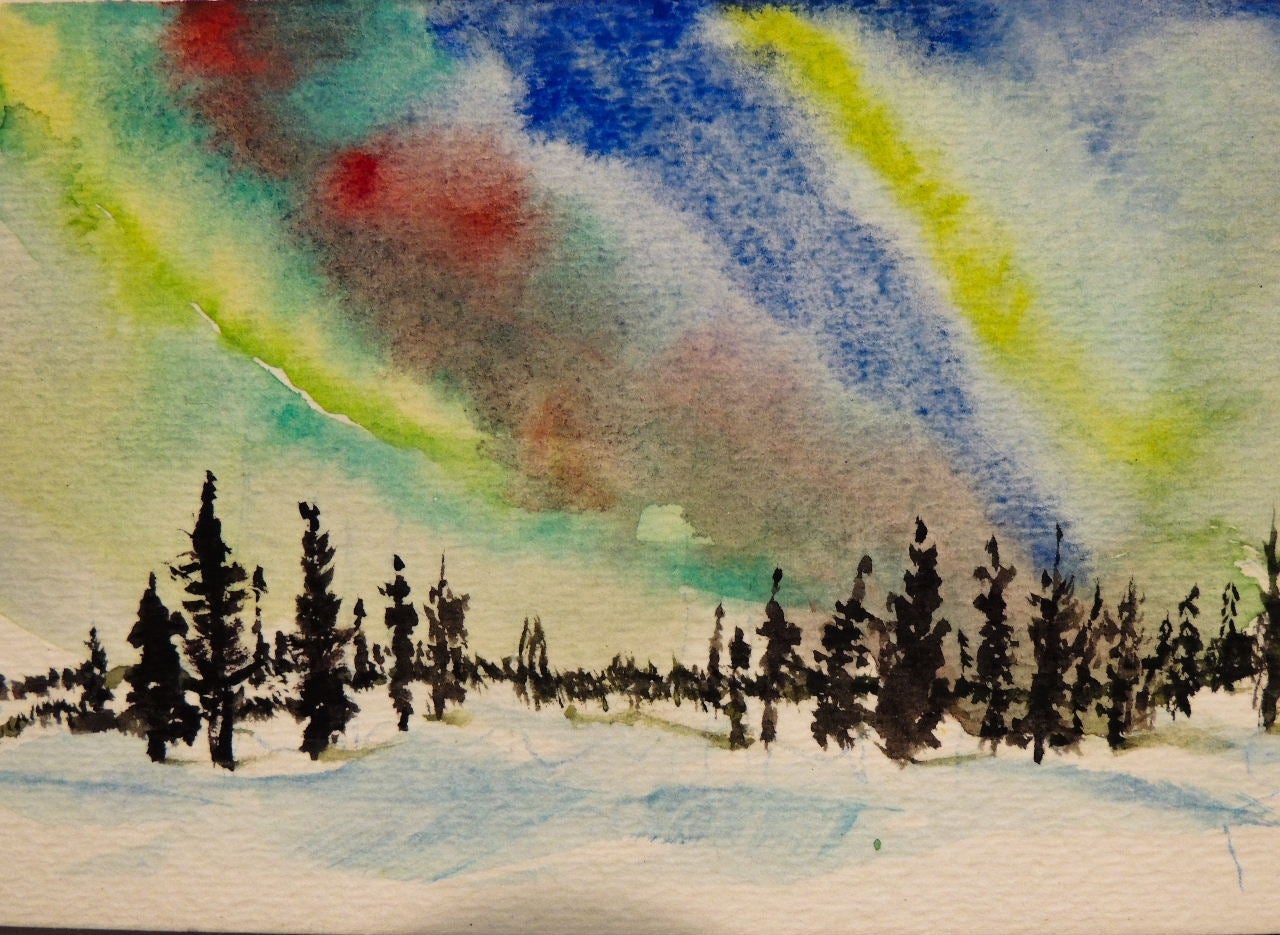 Artistic rendering of lights that we hoped to see. (Painting by C.L. Cope)