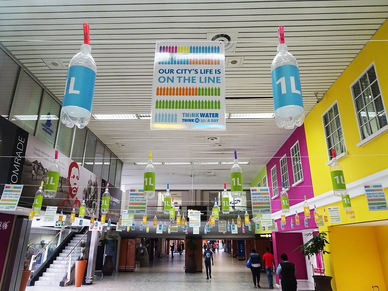 There was more signage at baggage claim and even an artsy display approaching the exit. 1L, in case you're wondering, is not a gate number, but one liter — South Africa uses the metric system.