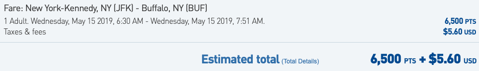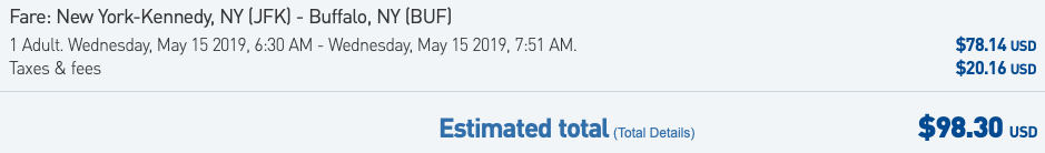 Take this example — if you wanted to book a $98.30 JetBlue flight from New York-JFK to Buffalo (BUF), you'd have two options: