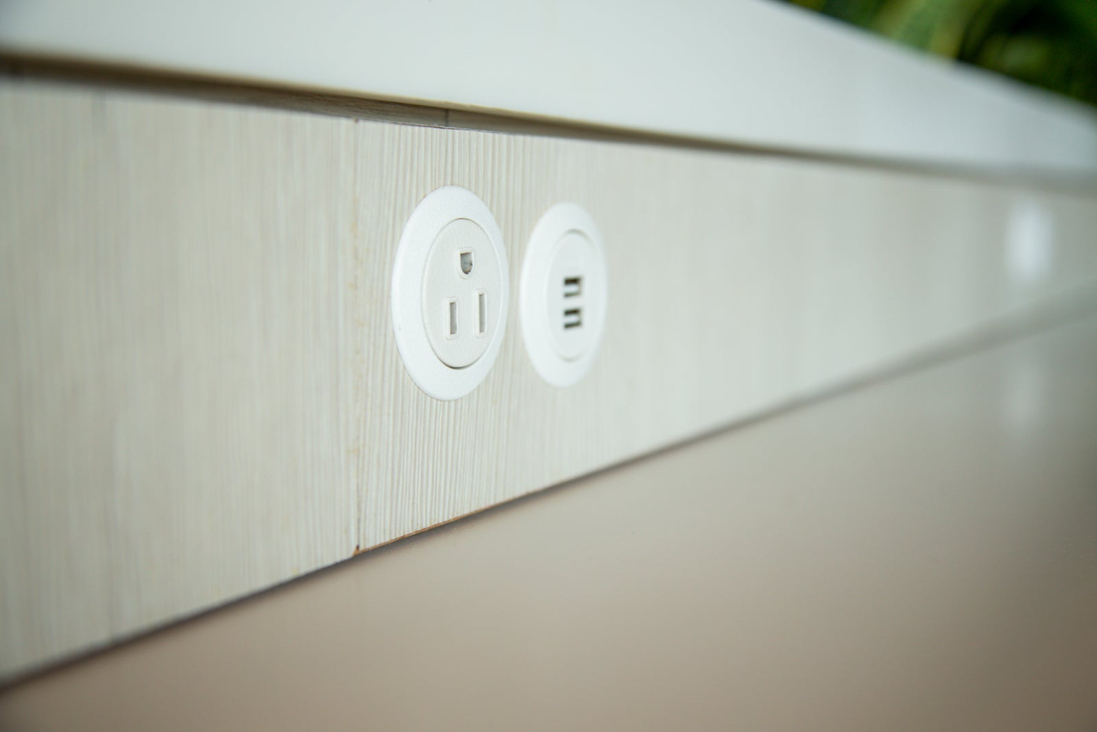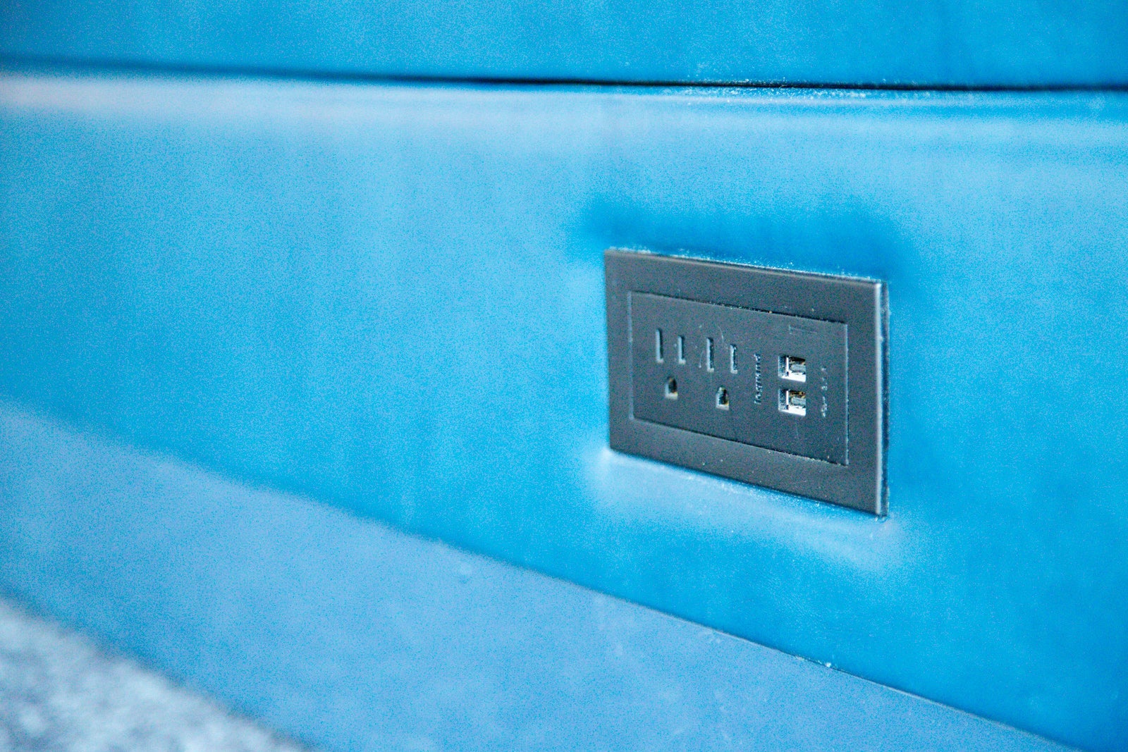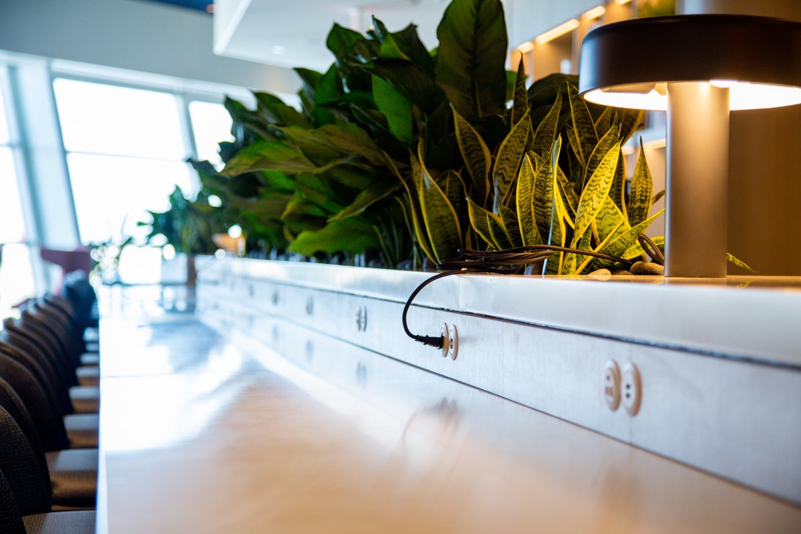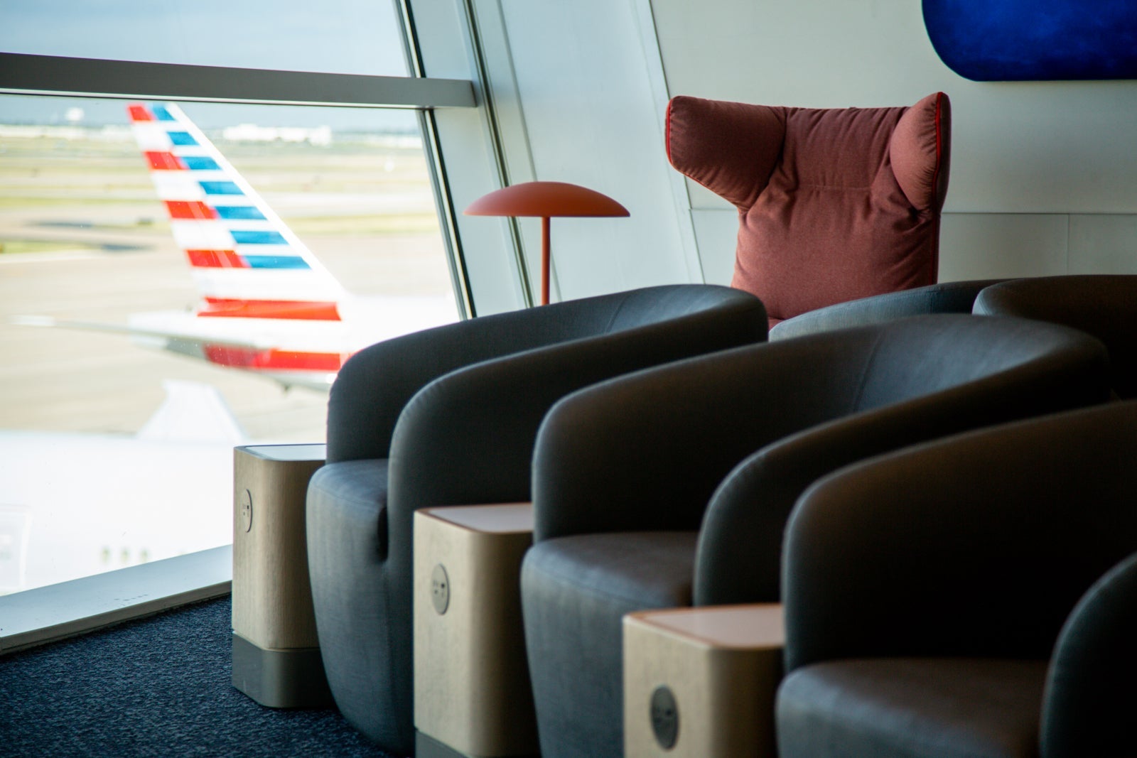 As for more practical matters, if you're worried about running out of juice for your devices, worry no more. Every seat in the lounge has access to power, points with both USB and standard three-prong outlets.