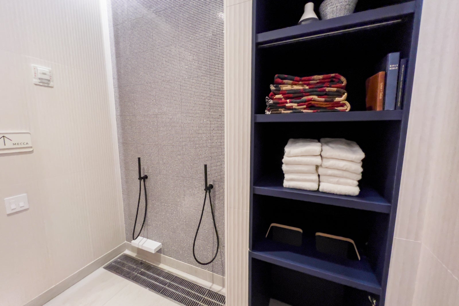 Visitors will be able to make reservations with an attendant for a shower suite, workout room, prayer room or the nursing room.