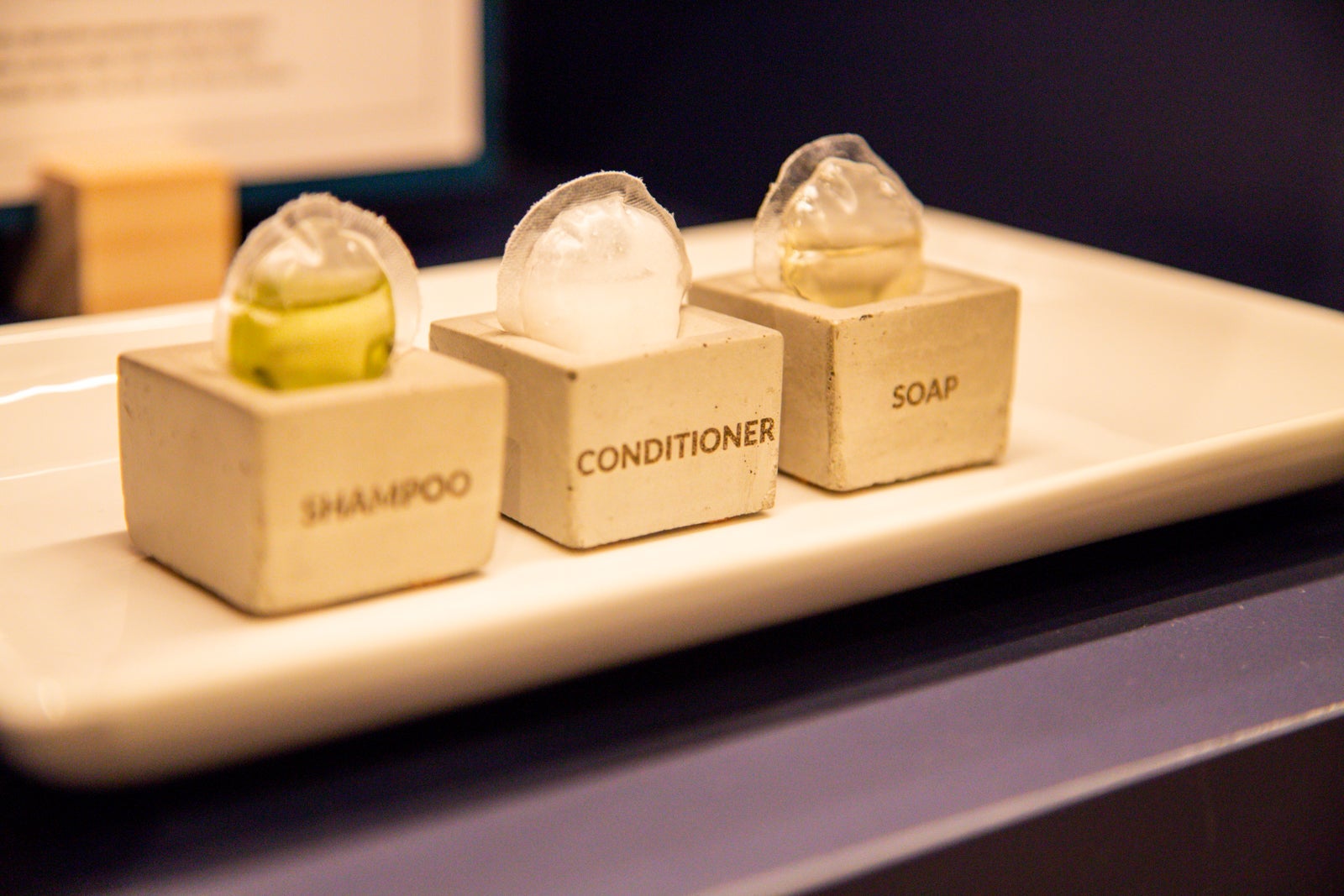 The lounge also has one shower suite, which is stocked with a full array of amenities including biodegradable shampoo, conditioner and soap. To reduce waste, Capital One partnered with a company called Sunrise Sessions that offers water-soluble toiletry containers that automatically dissolve. It's a pretty nifty concept.