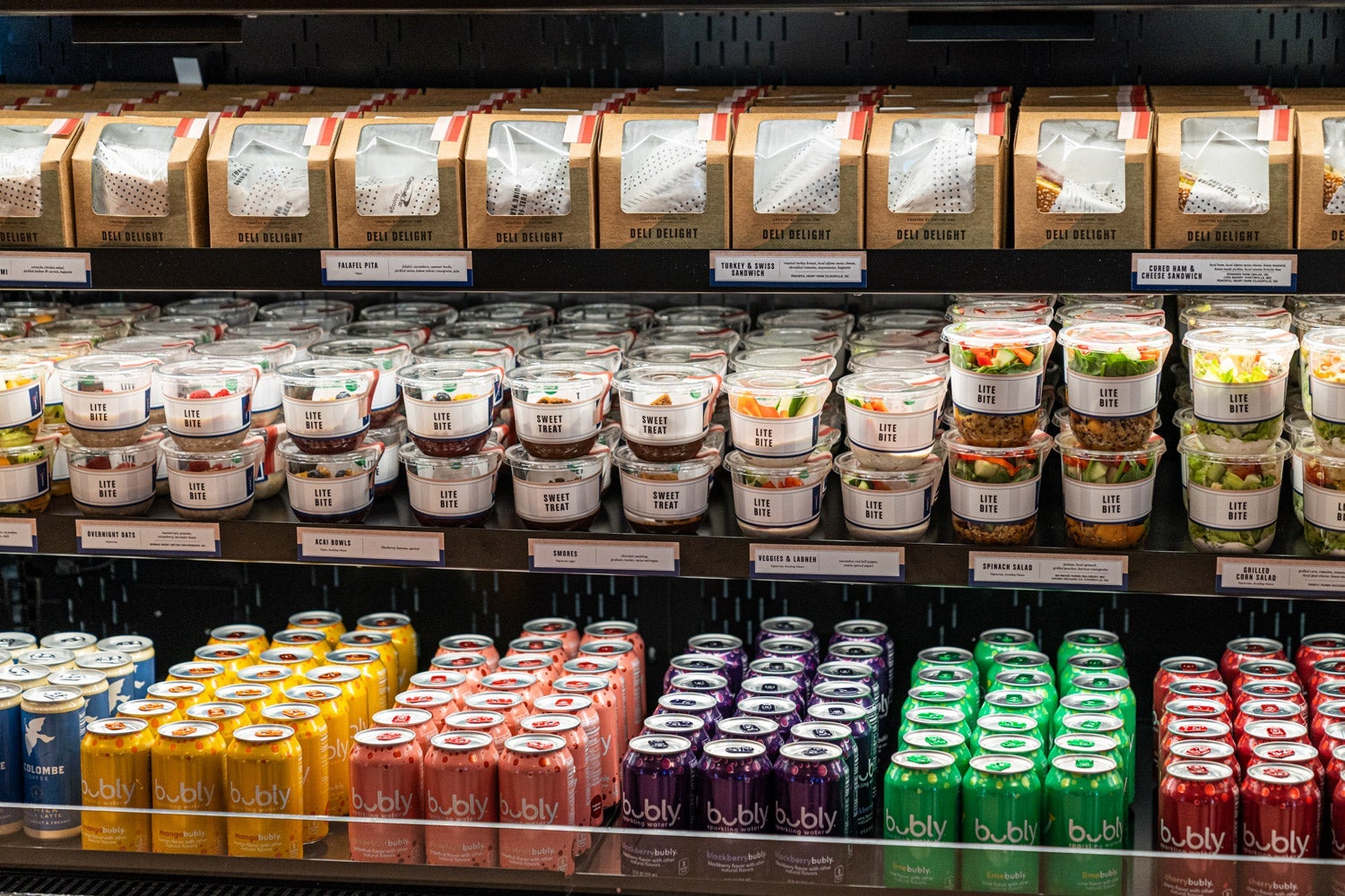 It's stocked with sandwiches, salads, parfaits and dishes like acai bowls. There are sweets, too, like a chocolate pudding-based s'mores bowl (more on the food in a bit). Branded paper bags are available to load up with goodies.