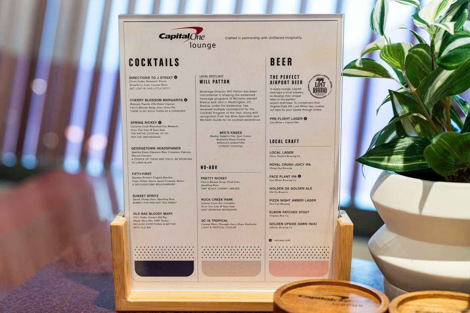 The bar also serves a unique beer designed specifically for the space. At each of its lounges, Capital One said it plans to work with a local brewery, tasking it to design its interpretation of "a perfect airport beer."