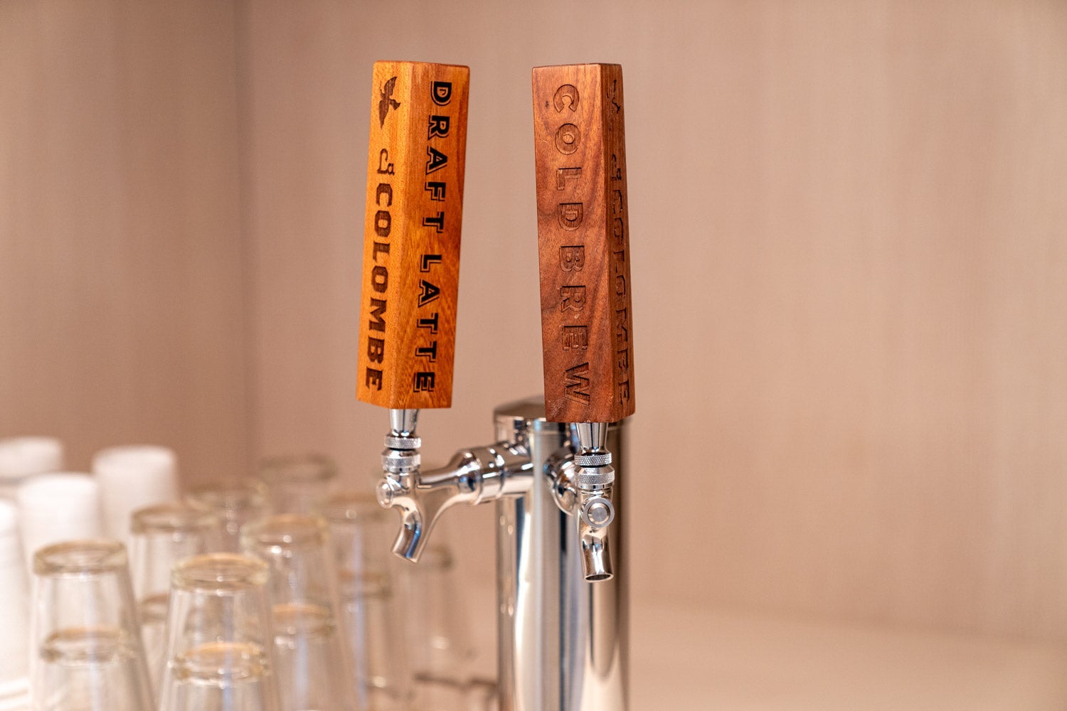 Just past the refrigerator are a few taps with La Colombe cold brew and draft latte, while visitors can order espresso drinks and teas from a full-service coffee bar to the side.