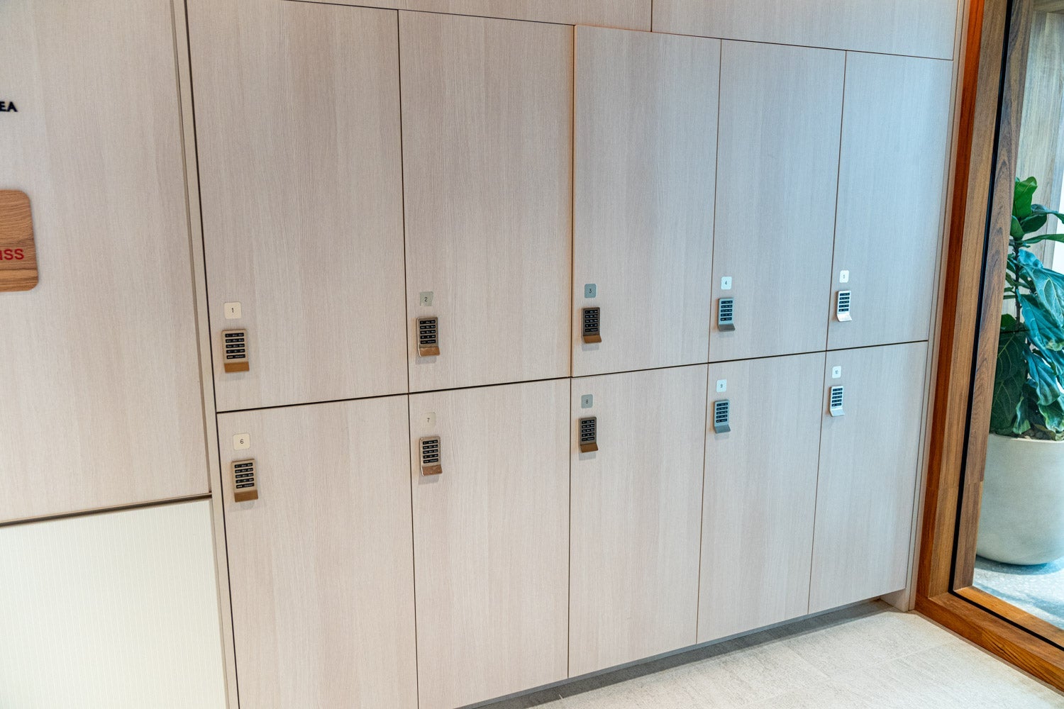 You'll find luggage lockers just ahead of those tables — a nice feature for anyone who doesn't want to lug their bags around the lounge, and a clever way of saving some space in the main area.