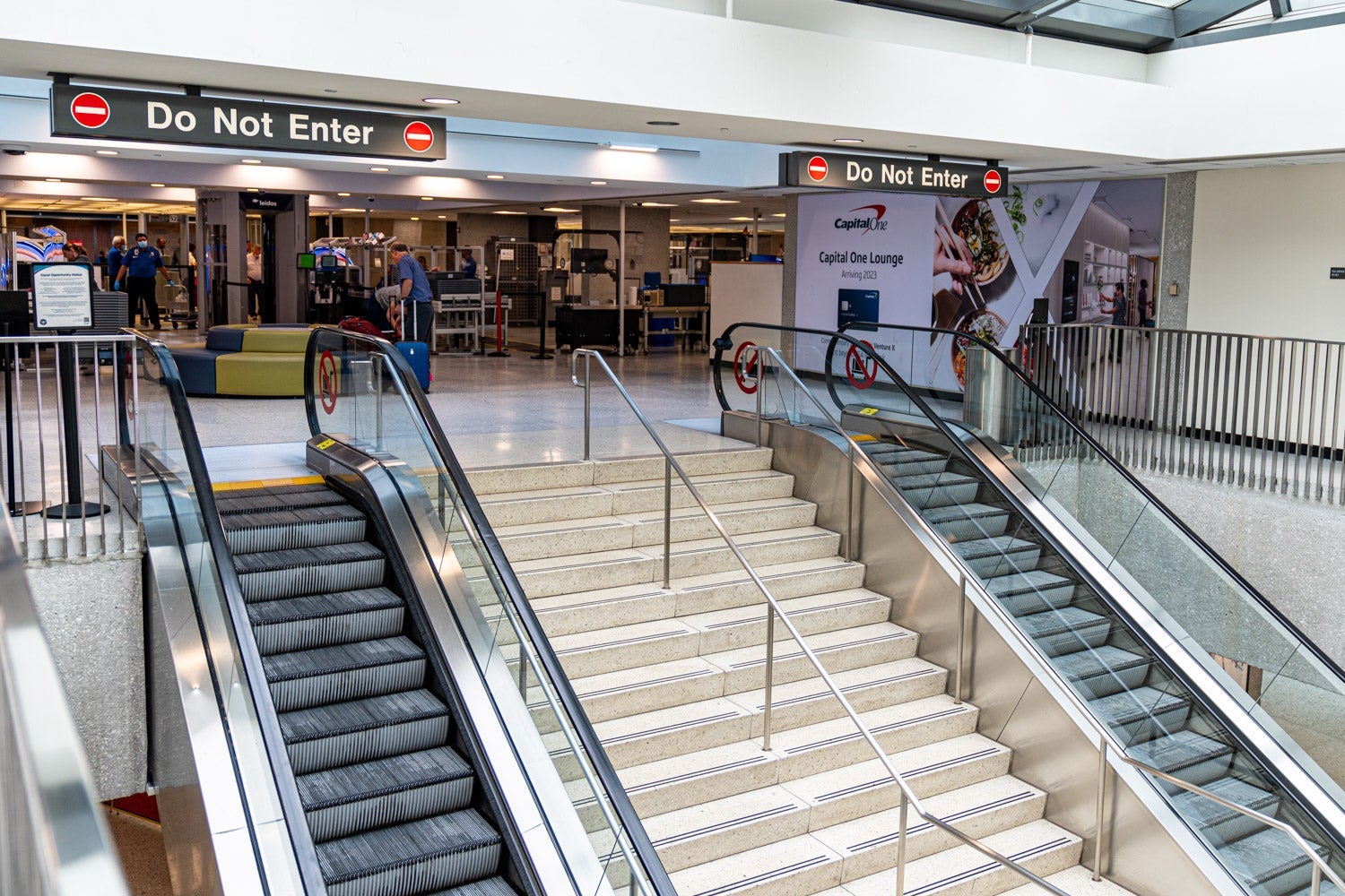 Those entering the standard checkpoints will have to walk, and those coming from connecting flights will have to take the terminal train toward ground transportation — and go up a staircase that's currently labeled "Do Not Enter."