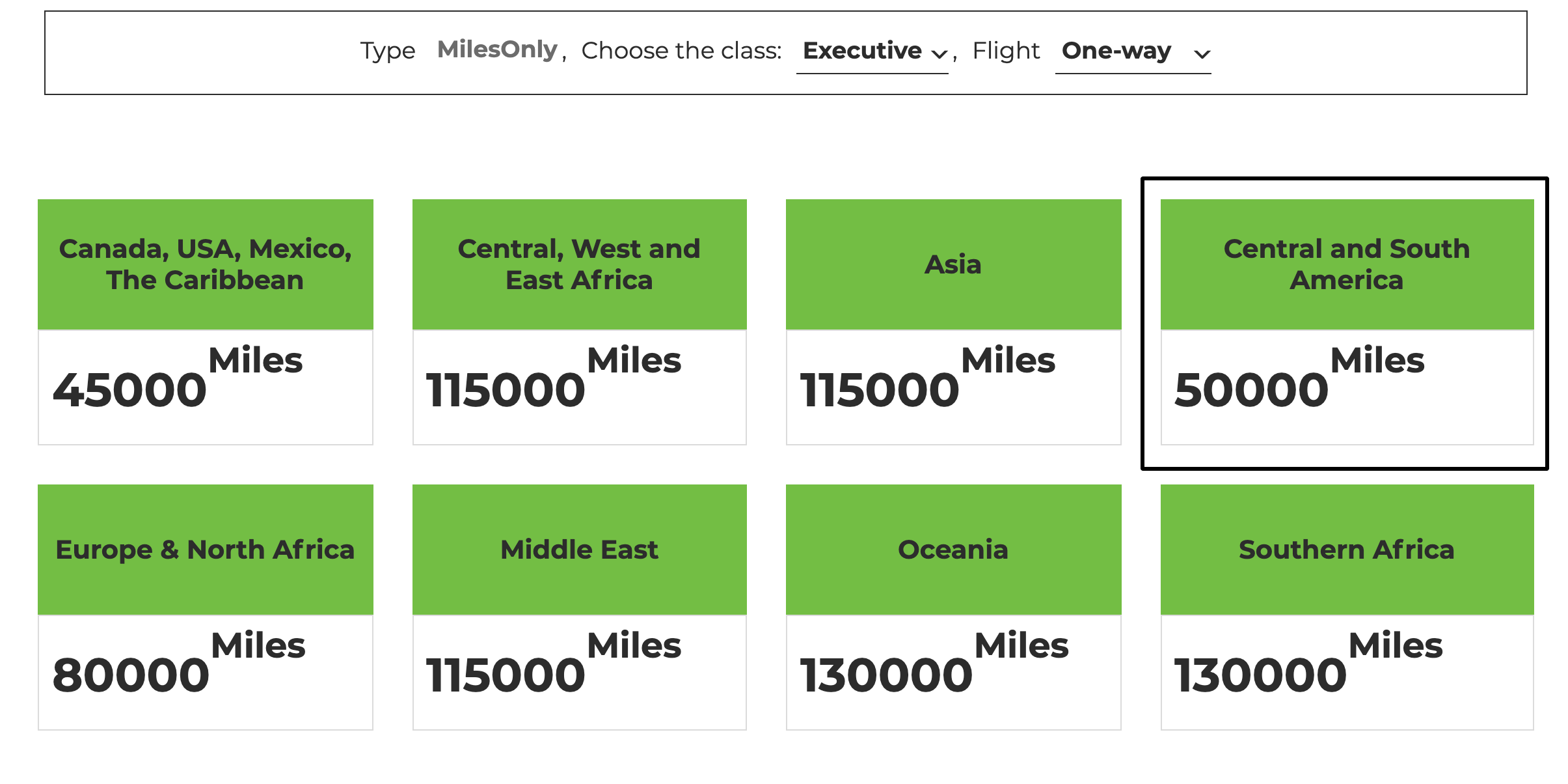 Here, the sweet spot is flying to anywhere in South America — including Brazil, Argentina and Chile — for 50,000 miles one-way in business class.