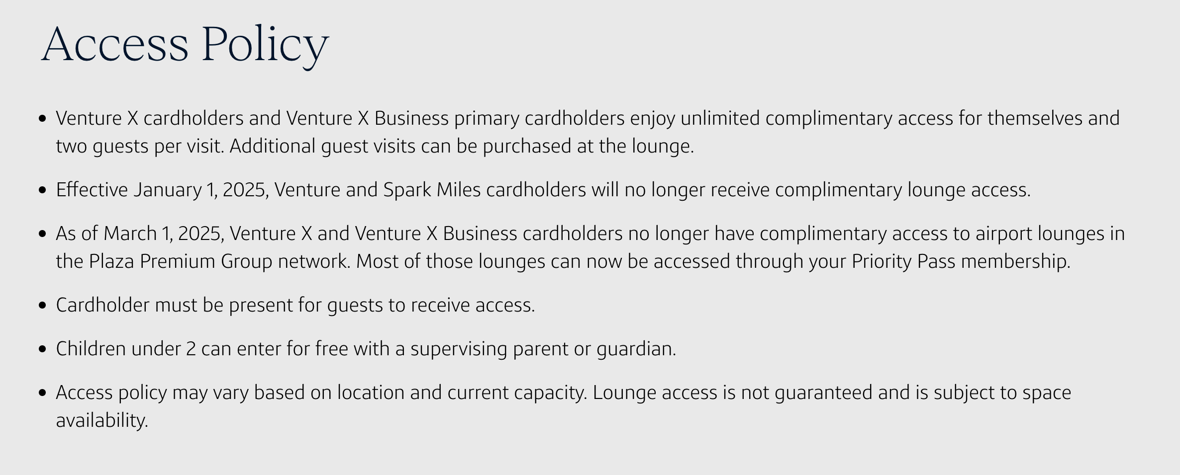 Accessing Plaza Premium lounges with the Venture X and Venture X Business after March