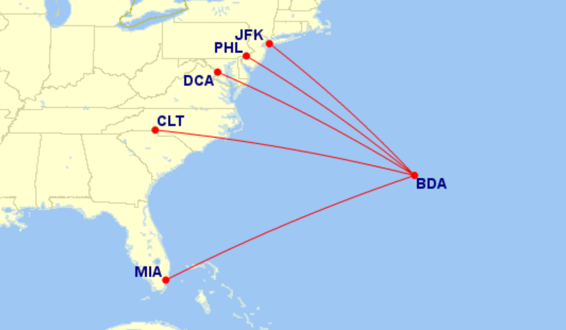 There are also nonstop options from five U.S. airports to Bermuda (BDA) for just 9,000 BA Avios each way. You can find options from Charlotte, Miami, New York-JFK, Philadelphia and Washington National (DCA).