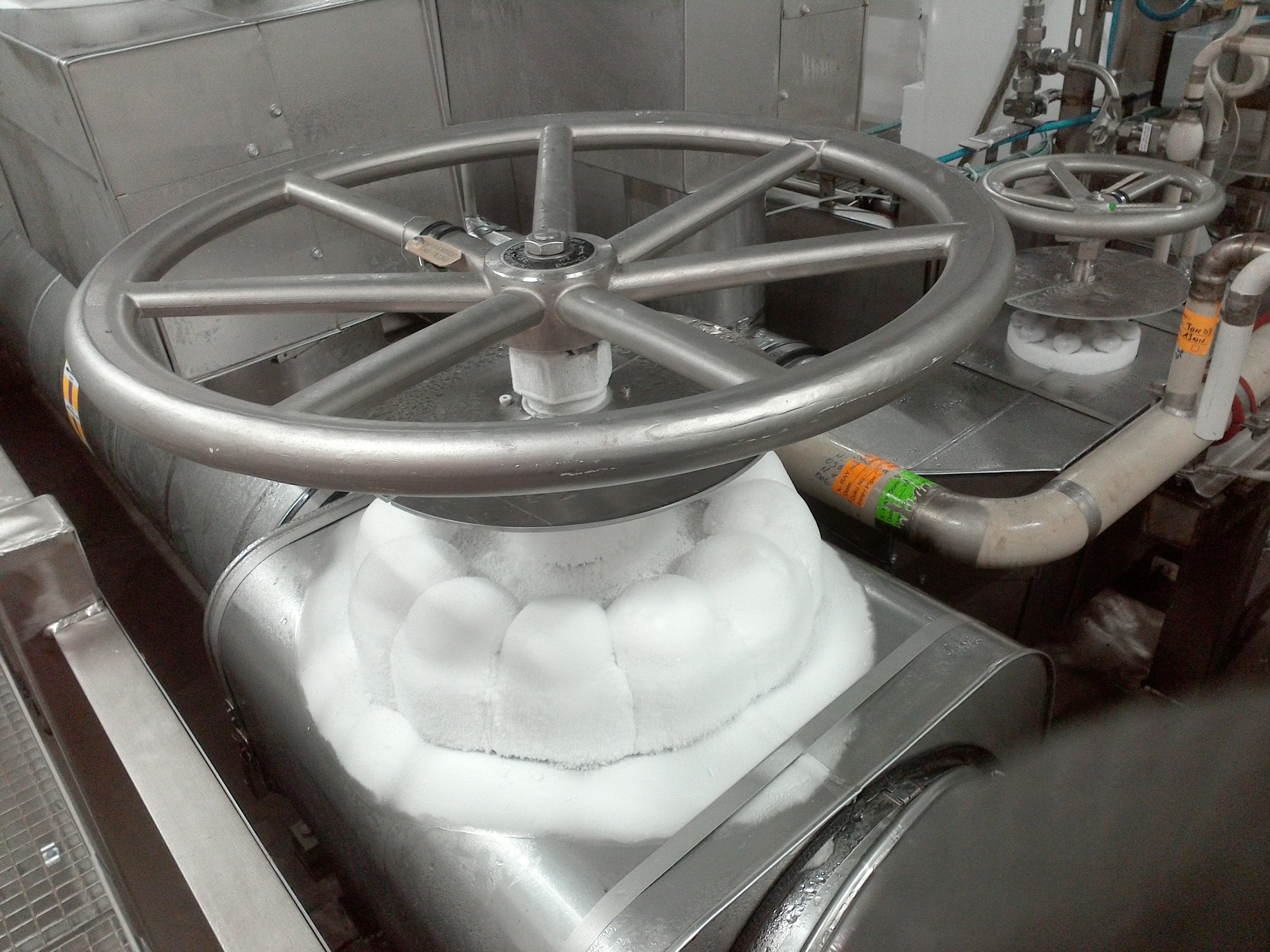 "The ship has three large tanks for LNG and several tanks for what we call marine gas oil [MGO], which is similar to diesel that you see in an airplane or that you might even have in a truck or a car on the road," Pruitt said. "It's highly refined. [The ship] can run on either one. In fact, when the ship is running on LNG, we actually inject a very small amount of MGO into the cylinders because LNG [is so cold -- 250 degrees below zero, Fahrenheit -- that it] can't ... self-ignite.... So we have to spray a little bit of MGO into each cylinder. It's effectively the spark plug for getting the LNG to ignite and combust."