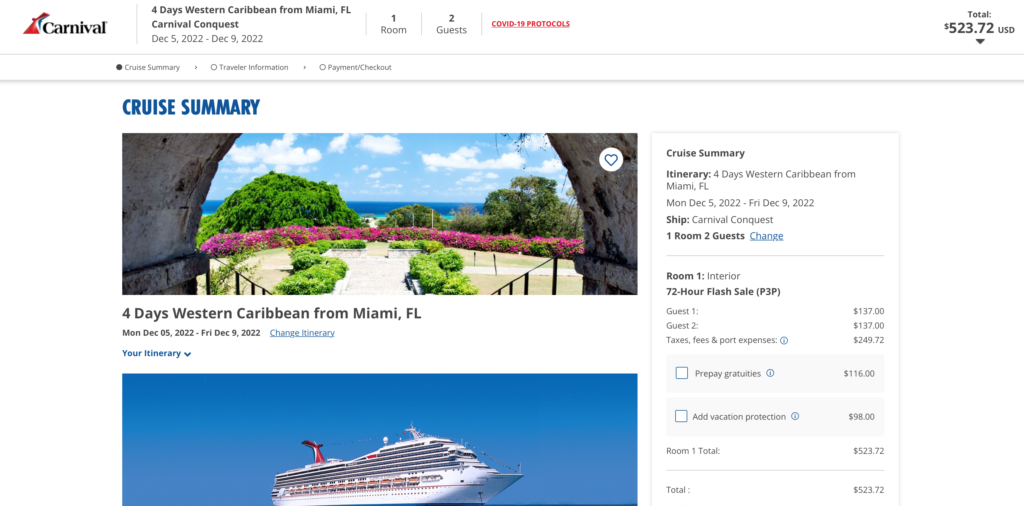 Cruise line: Carnival Cruise Line.