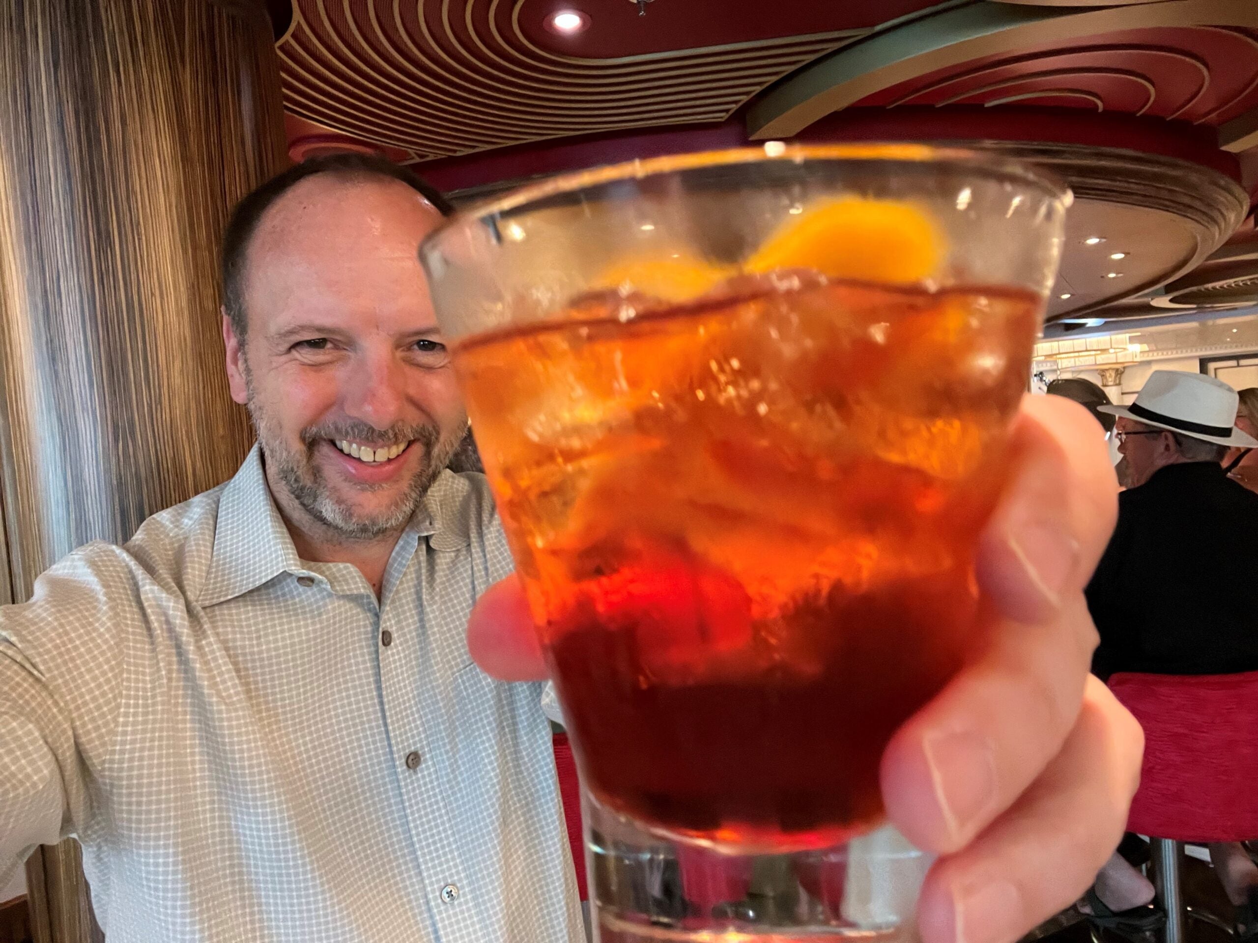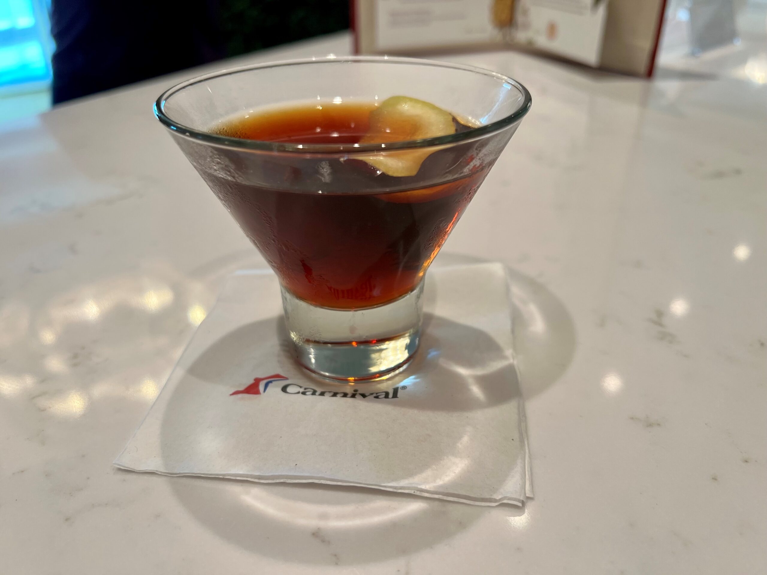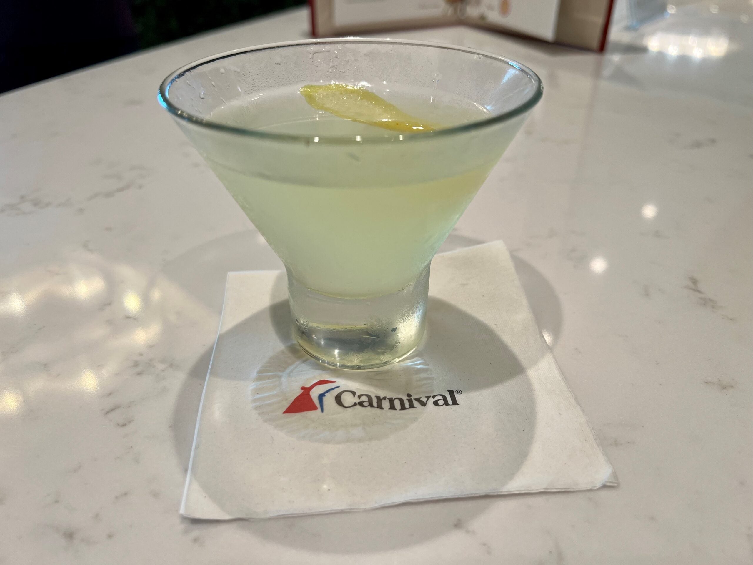 Both the Bitter Giuseppe and the Amalfi Martini are priced at $13 for Carnival passengers who don't have a Cheers! beverage package, while the Negroni Sbagliato is $9.50. Passengers with the beverage package can order any of the drinks for free.