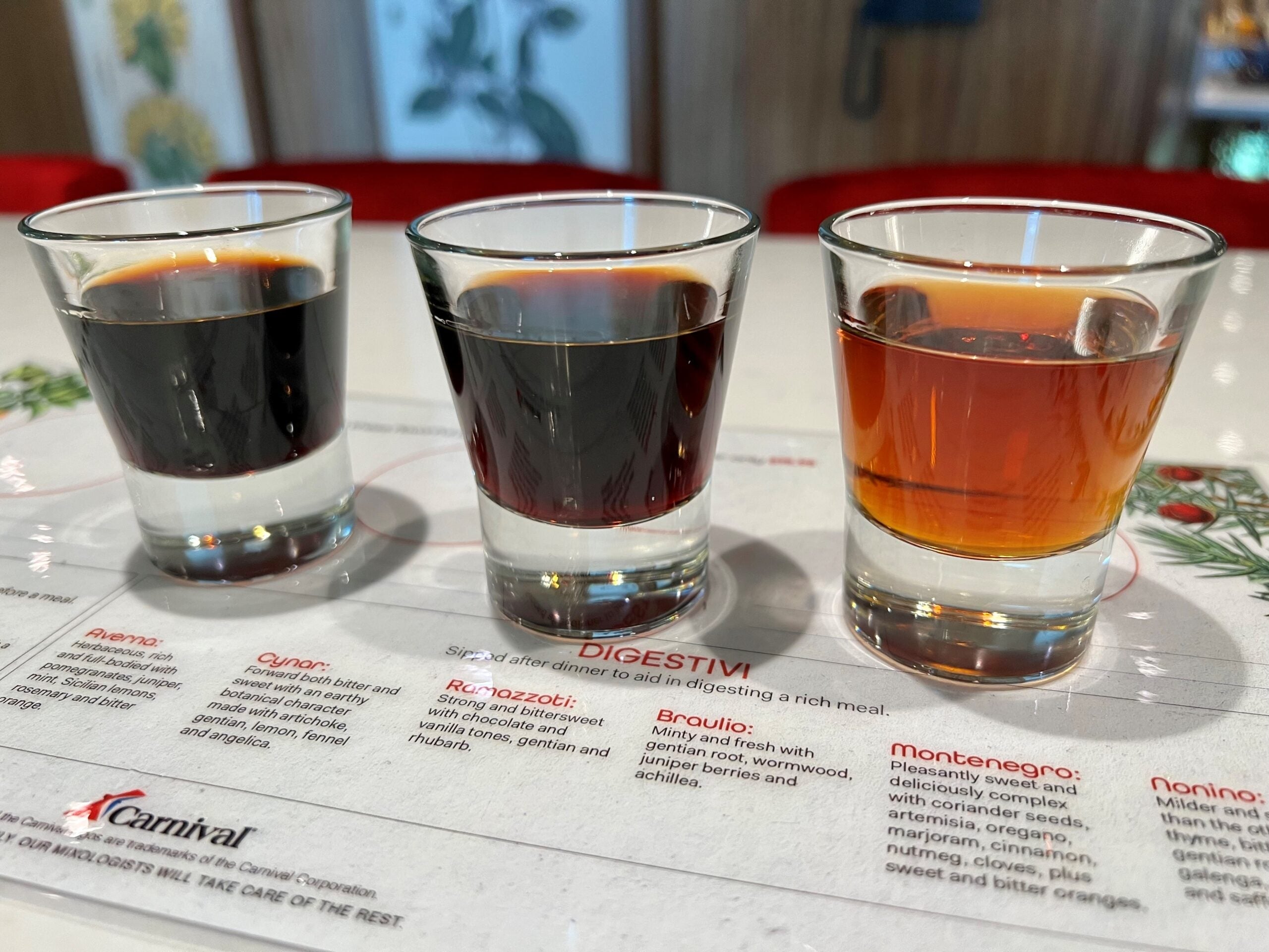 Just unveiled on Carnival's newest ship, the Italy-themed Carnival Venezia, the Amari bar (as it's called) serves up nearly a dozen amari that can be ordered one at a time or in three-shot samplers. It also offers half a dozen amari-infused cocktails with names like Bitter Guiseppe and Negroni Sbagliato.