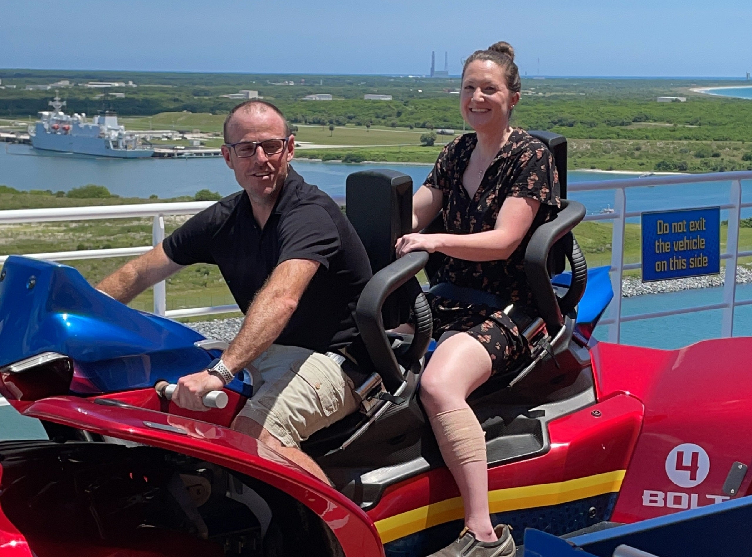 After being weighed and changing my shoes, I was waved through a gate and directed to board one of the cars, which you straddle like a motorcycle instead of sitting inside. An attendant helped me buckle the massive seatbelt and gave my friend, the driver, instructions on how to operate the controls.
