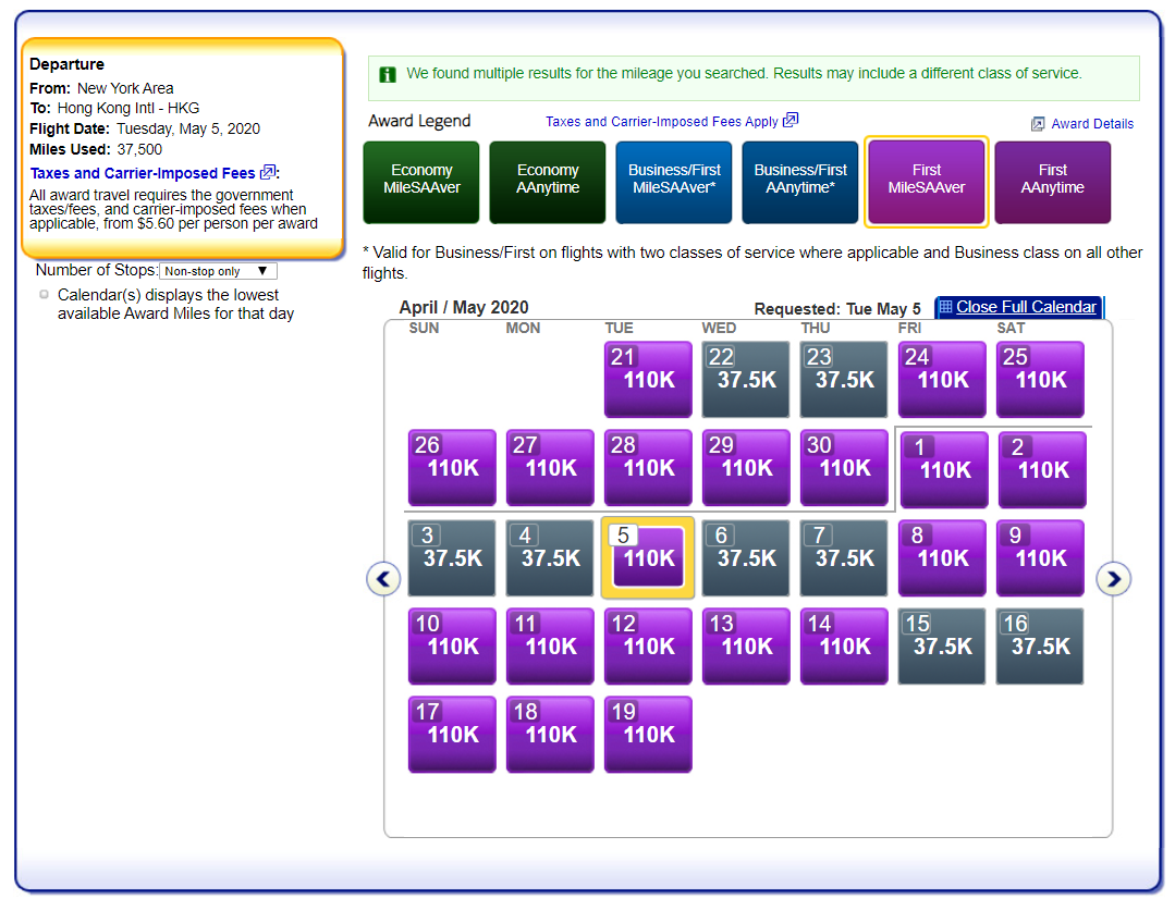 There's award availability every single day from mid-April to mid-May between New York City to Hong Kong, which is likely to still be part of the large award space opening last week: