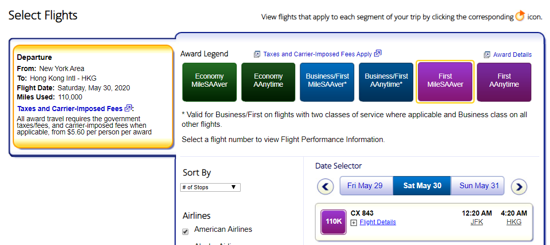 Great news if you want to fly some of the best airline products in the world! American Airlines just added Cathay Pacific award availability to its website. For the first time, you can search and book Cathay Pacific Awards right on AA.com.