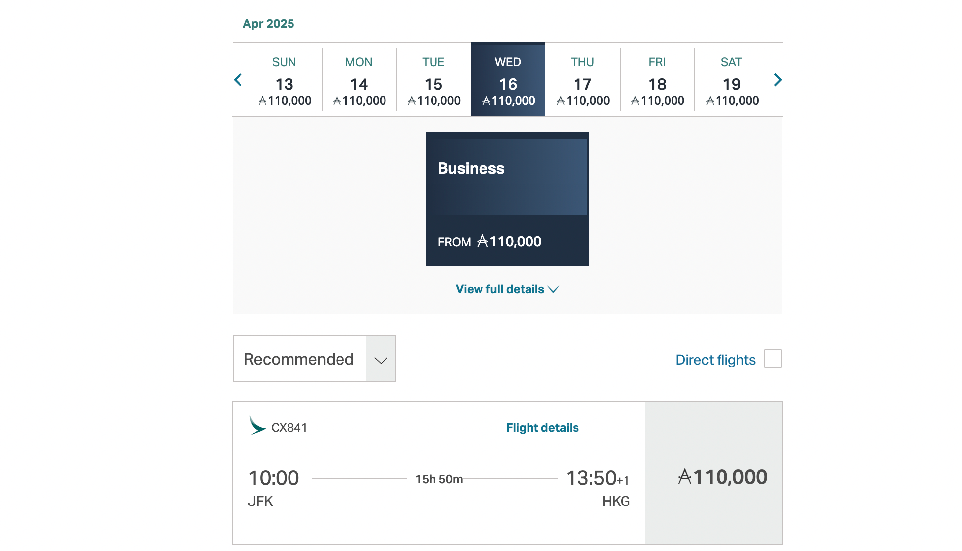 When I searched dates in 2025 on Alaska and American, I only found main cabin and premium economy award tickets when flying from JFK to HKG. But, if you don't mind sitting in premium economy, this is a better deal than booking the same flight on Cathay's own website.