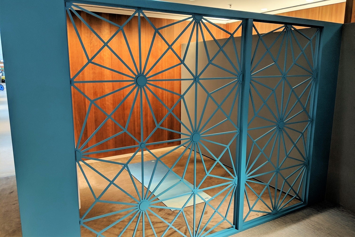 The "Private Yoga" area isn't very private. Instead of having a slotted wall, it would add quite a bit more privacy if a curtain or translucent wall was swapped in between the shared and private yoga areas, for the self-conscious or privacy-minded.