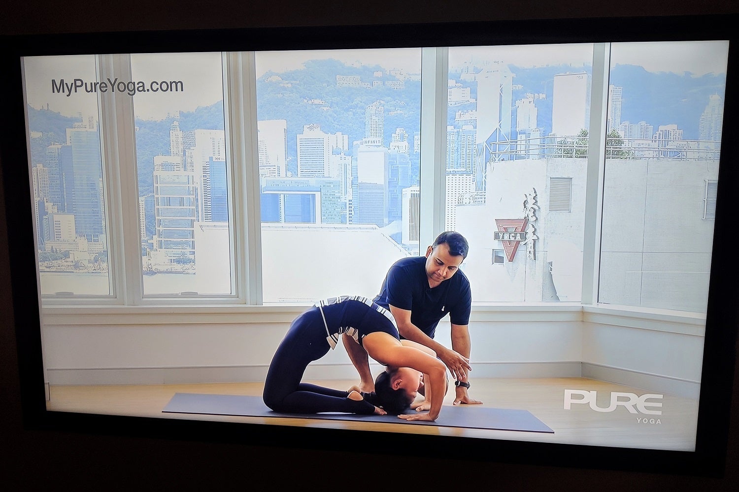 The second video played for seemingly about 30 minutes and was far too advanced to be shown in this type of space. I feel that Cathay Pacific should work with the content provider to swap out this video and keep to beginner and intermediate (at the most) videos. Or, at the very least, allow visitors to chose the video shown through either a touchscreen or button system.