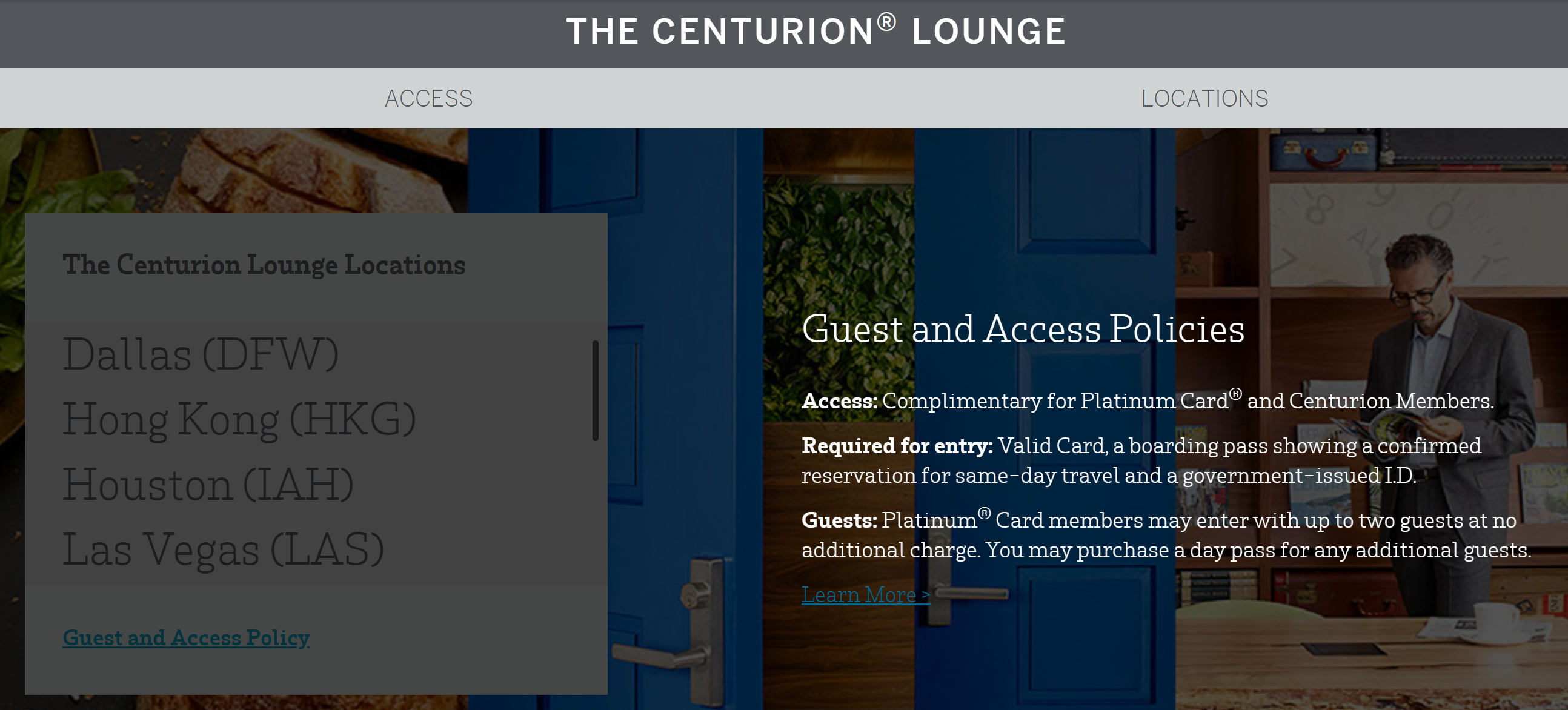 One of the great perks of The Platinum Card® From American Express is Centurion Lounge access. There are Centurion Lounges currently in nine airports, with lounges in Denver (DEN) and Los Angeles (LAX) under construction and another planned at New York's JFK. Platinum and Centurion cardholders with up to two guests can visit the lounge anytime before departure or upon arriving at an airport.