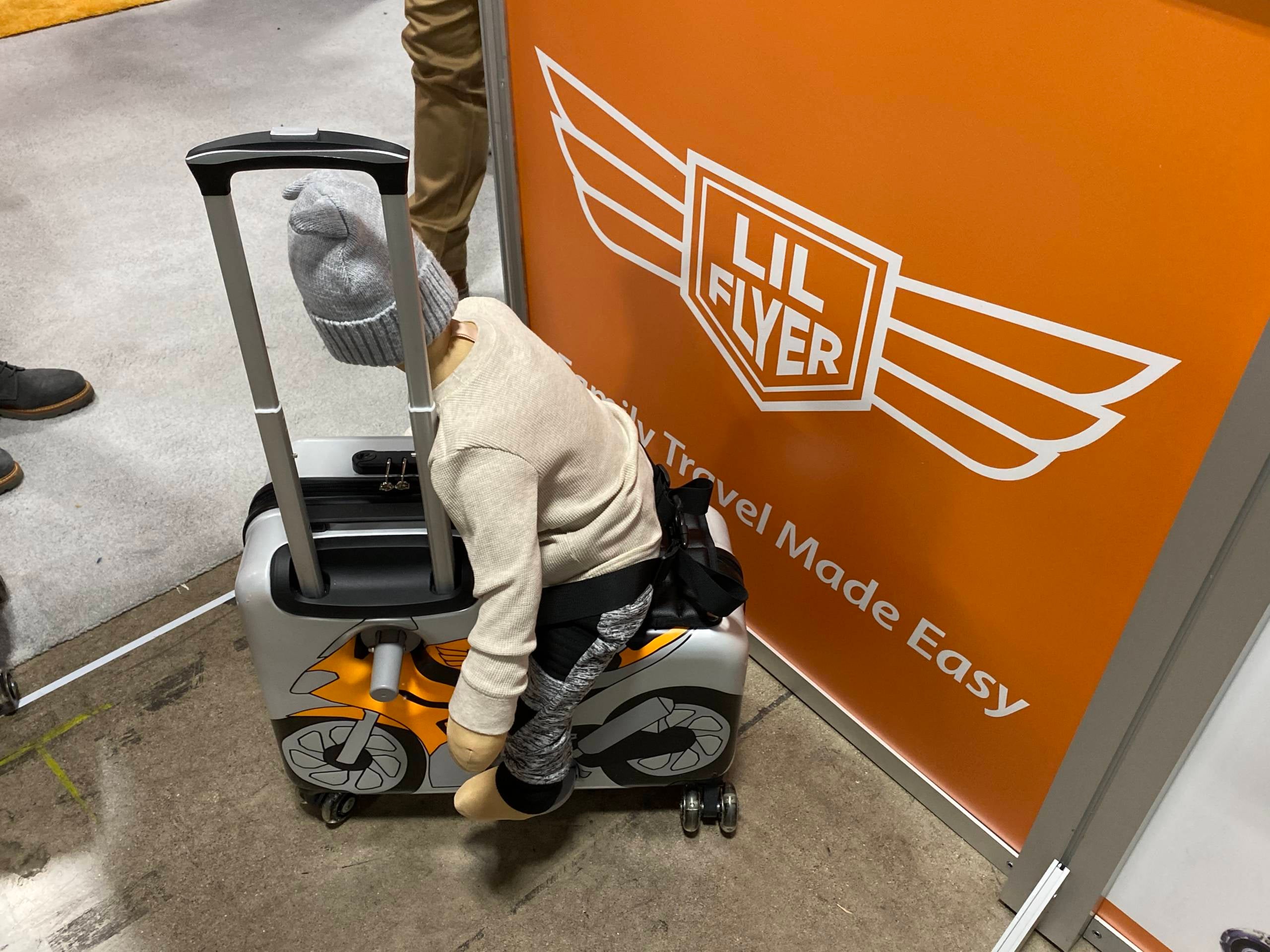 I've seen ride-on suitcases for years, even big versions for adults. Those stretch into the thousands of dollars While it doesn't strike me as a huge market, another player seems to be launching a riding suitcase aimed at kids. The Lil Flyer has the tagline "Family Travel Made Easy." As a parent of two traveling kids, it'll take more than a suitcase to make family travel easy. But, your little one might enjoy the fun of a padded seat on your suitcase as you zip through the airport. Lil Flyer representatives say that you'll be able to get the regular and motorcycle version with light-up wheels for roughly $150 later this year.